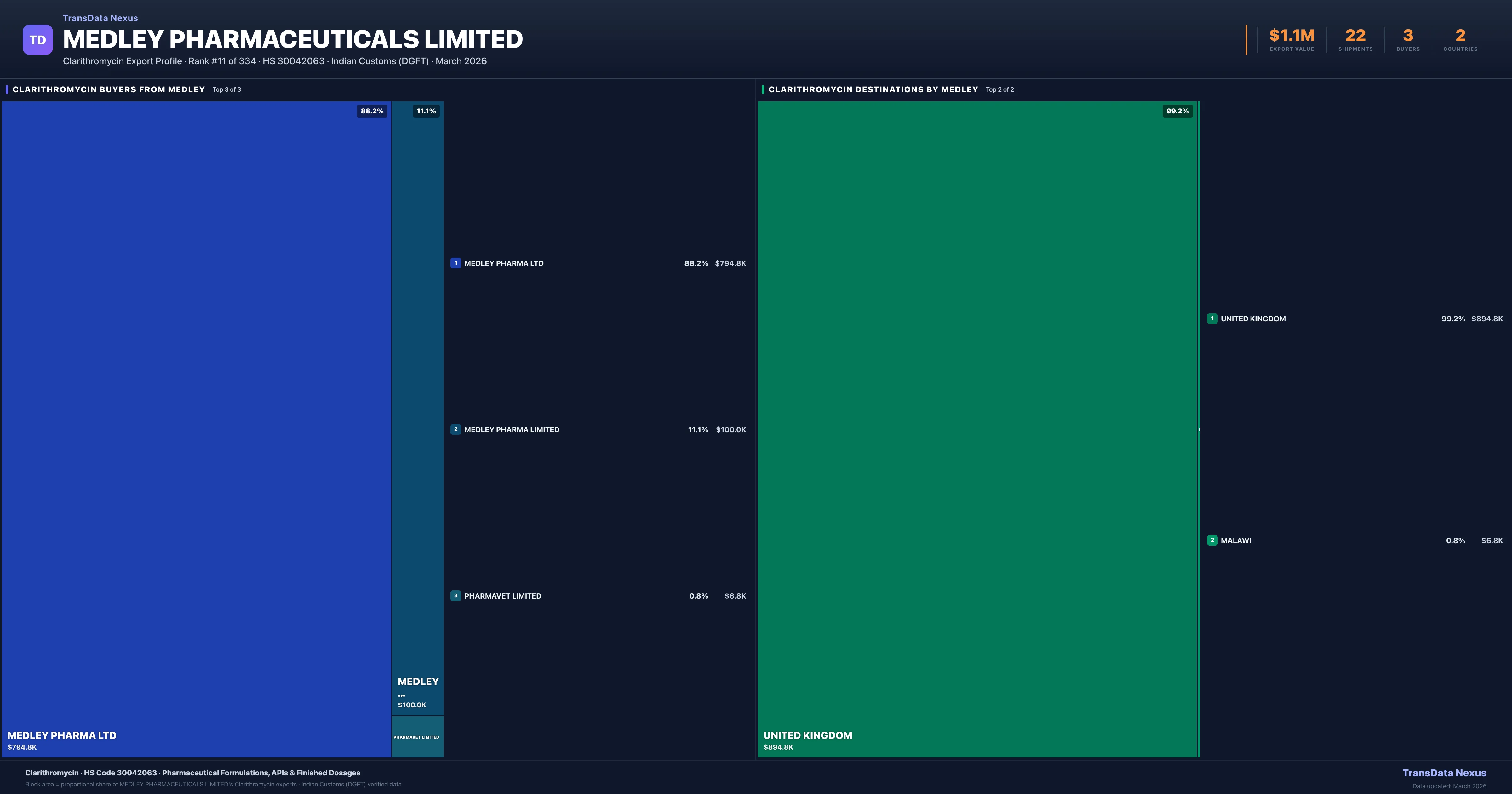 Medley Pharmaceuticals Limited — Clarithromycin Export Profile: Buyers & Destinations