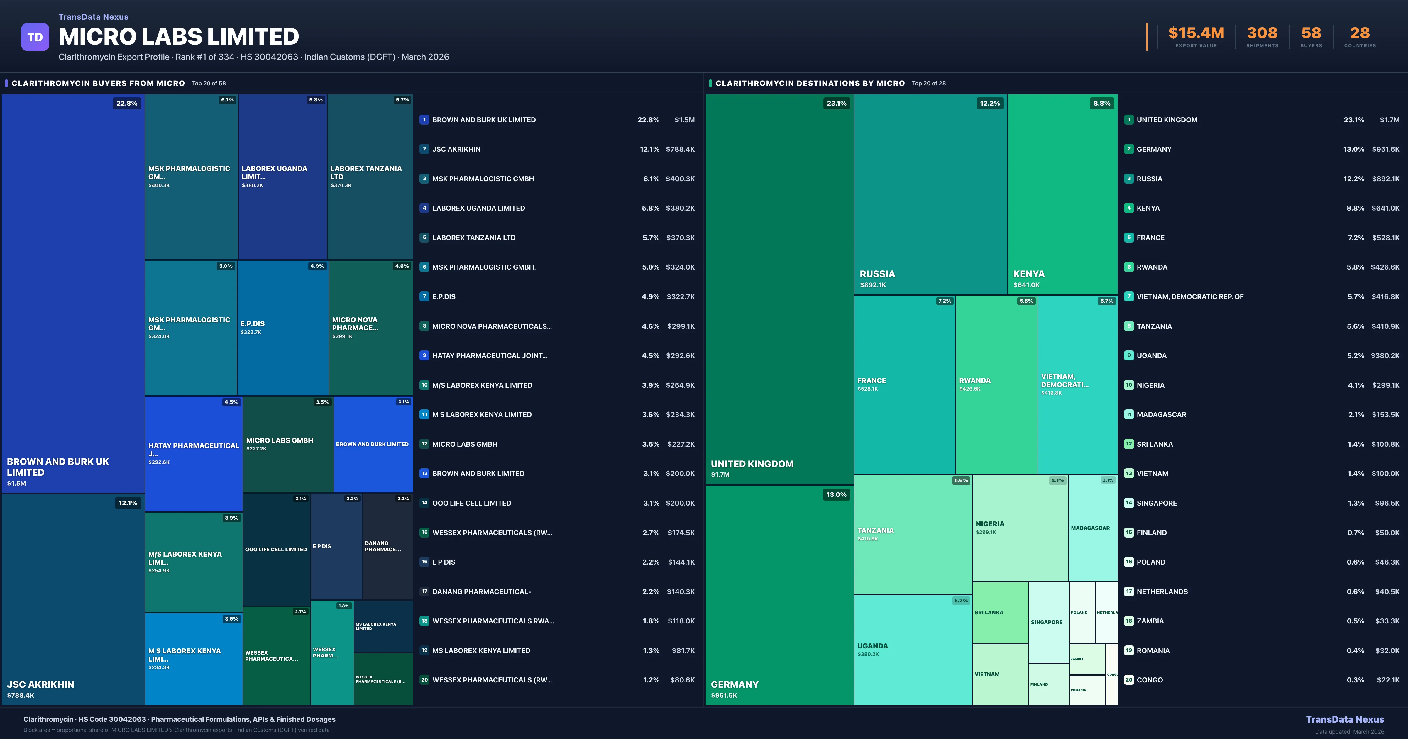 Micro Labs Limited — Clarithromycin Export Profile: Buyers & Destinations