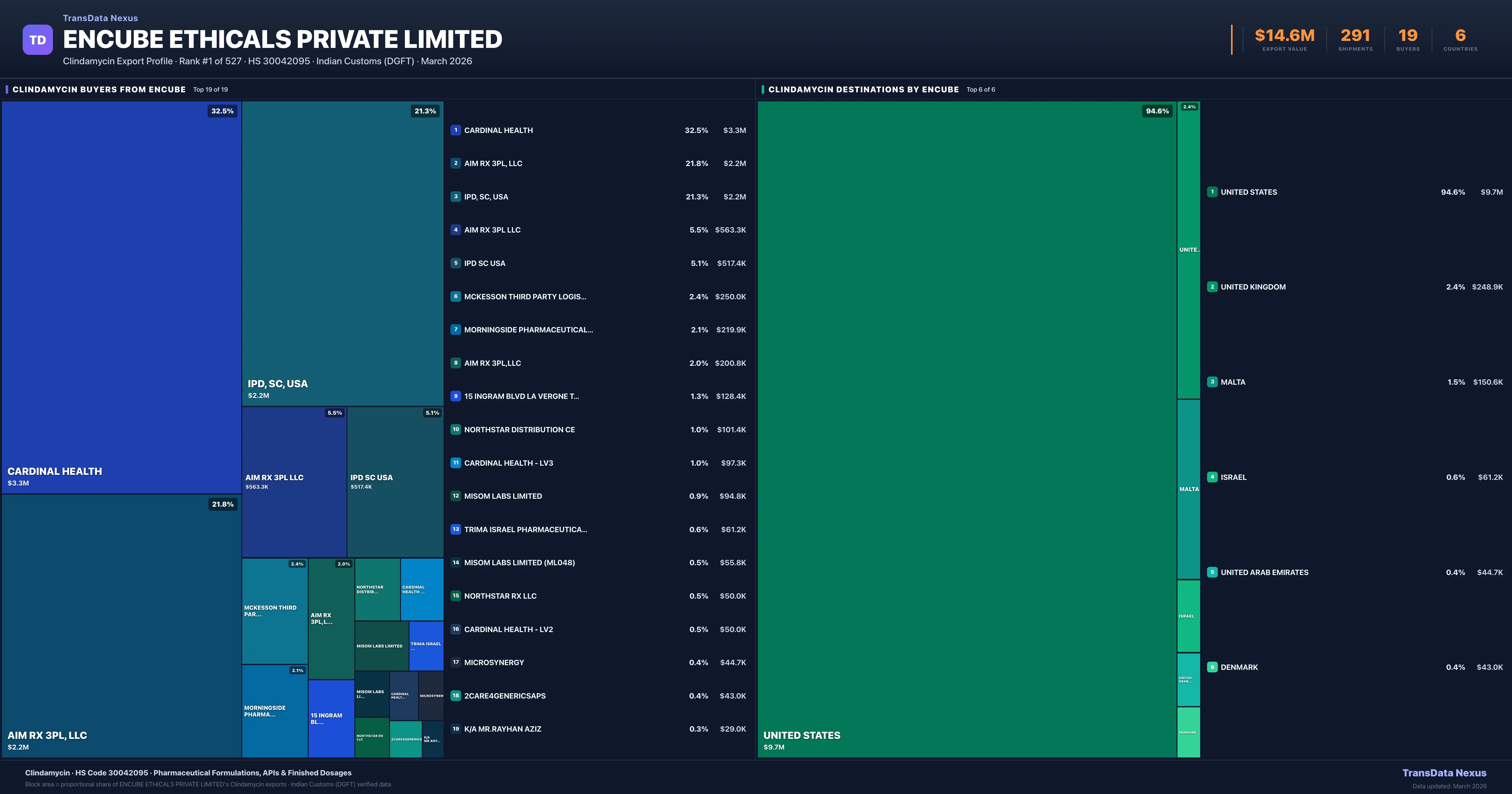 Encube Ethicals Private Limited — Clindamycin Export Profile: Buyers & Destinations