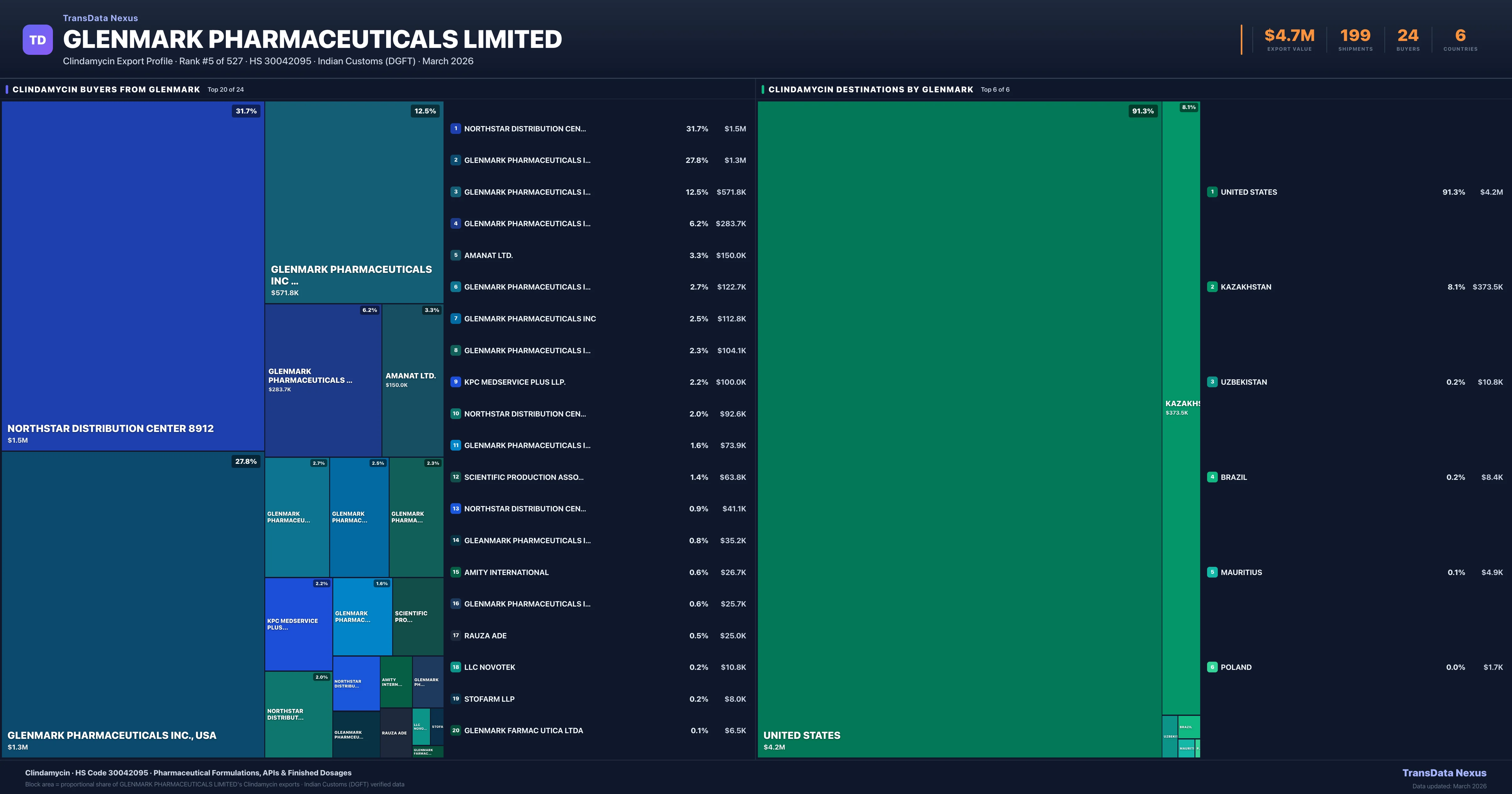 Glenmark Pharmaceuticals Limited — Clindamycin Export Profile: Buyers & Destinations