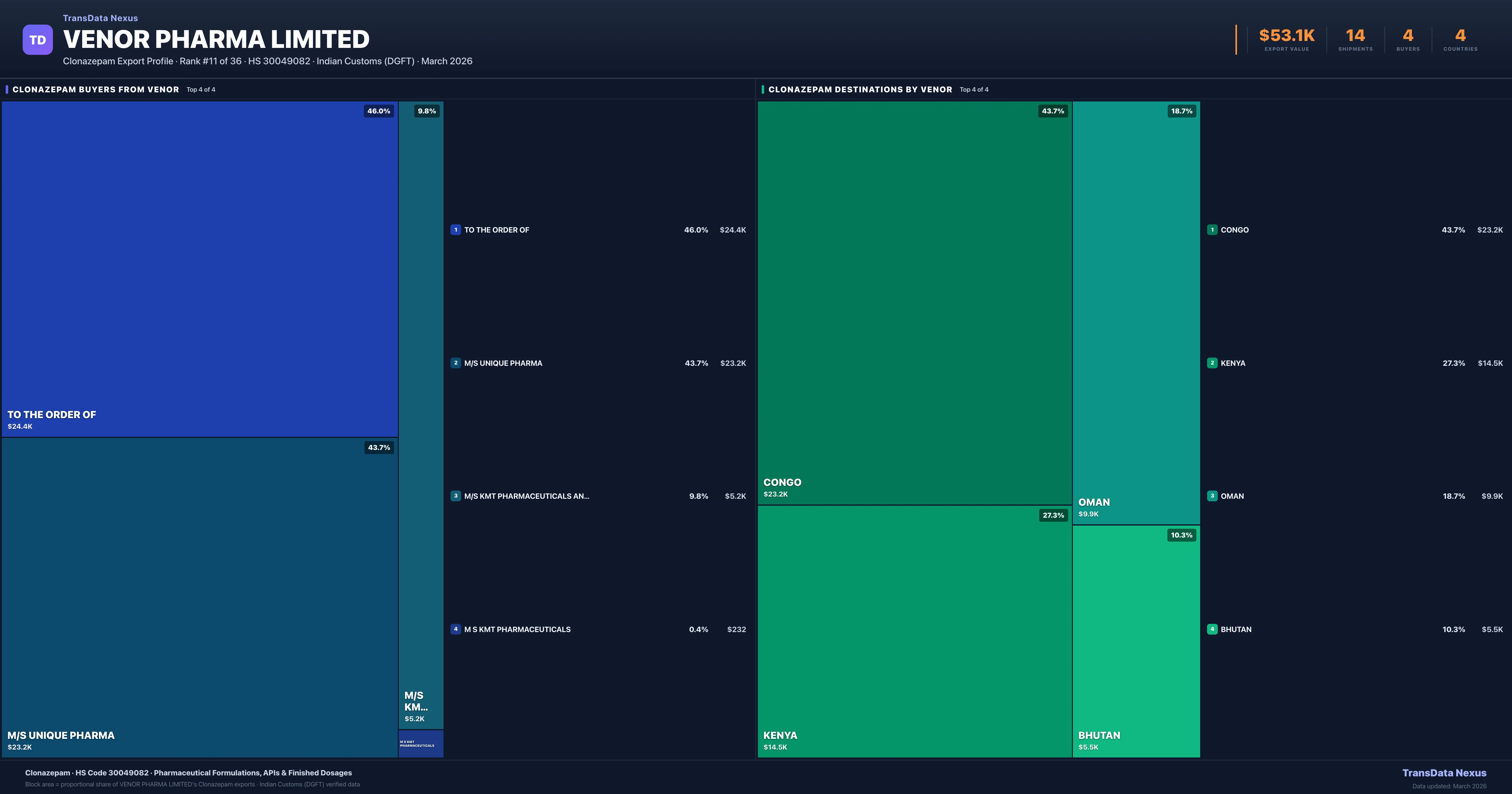 Venor Pharma Limited — Clonazepam Export Profile: Buyers & Destinations