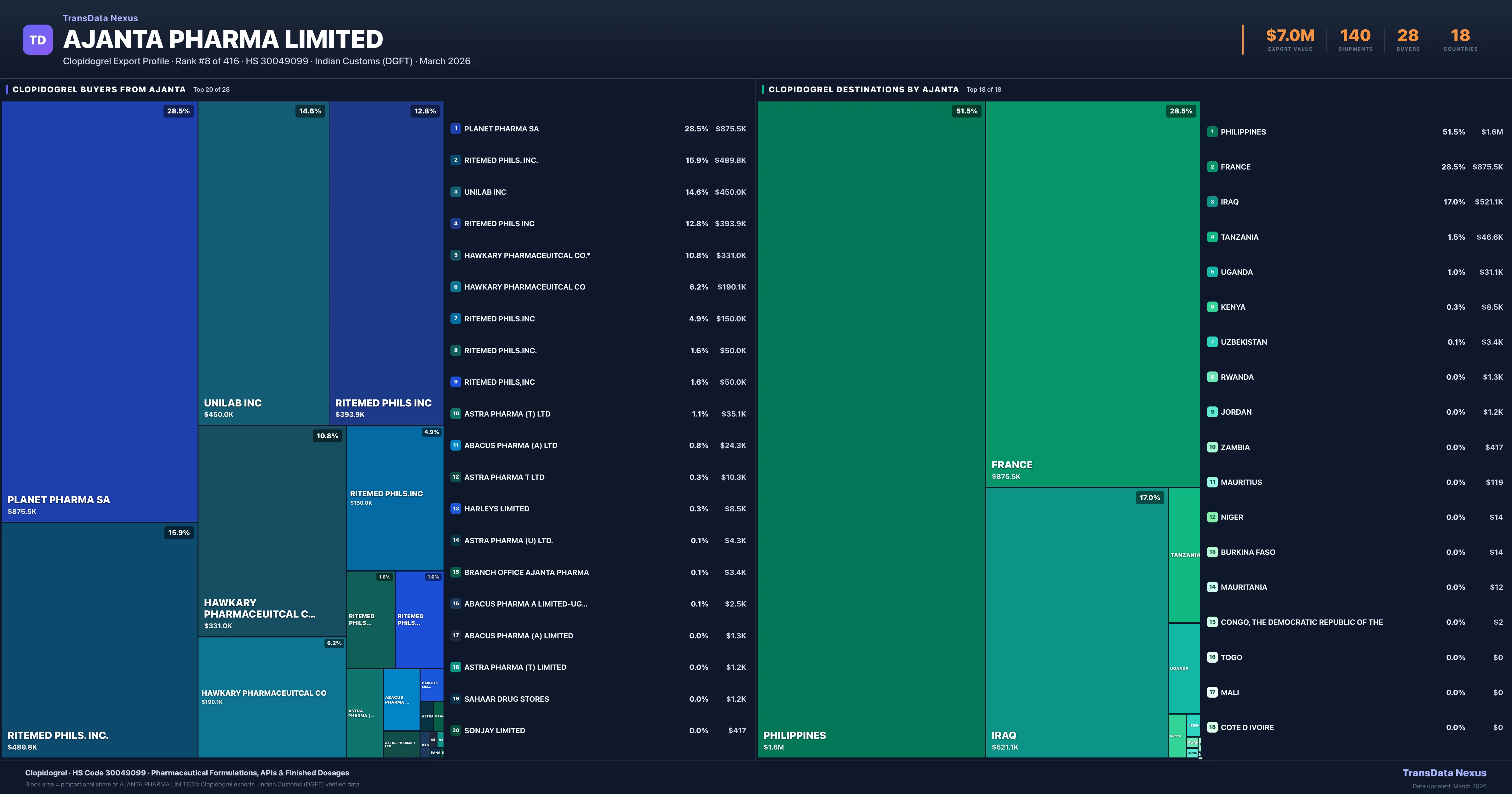 Ajanta Pharma Limited — Clopidogrel Export Profile: Buyers & Destinations
