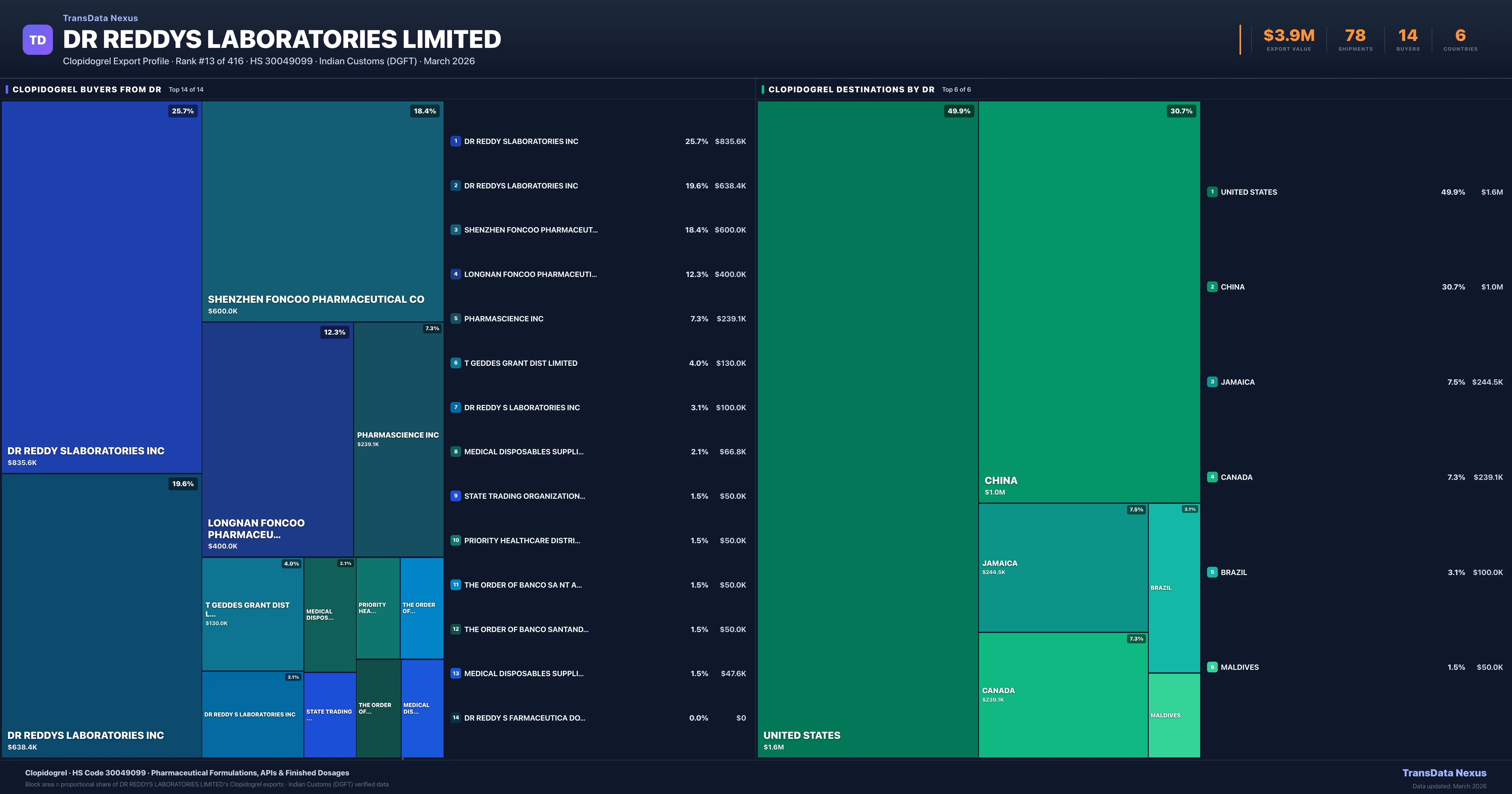 DR Reddys Laboratories Limited — Clopidogrel Export Profile: Buyers & Destinations