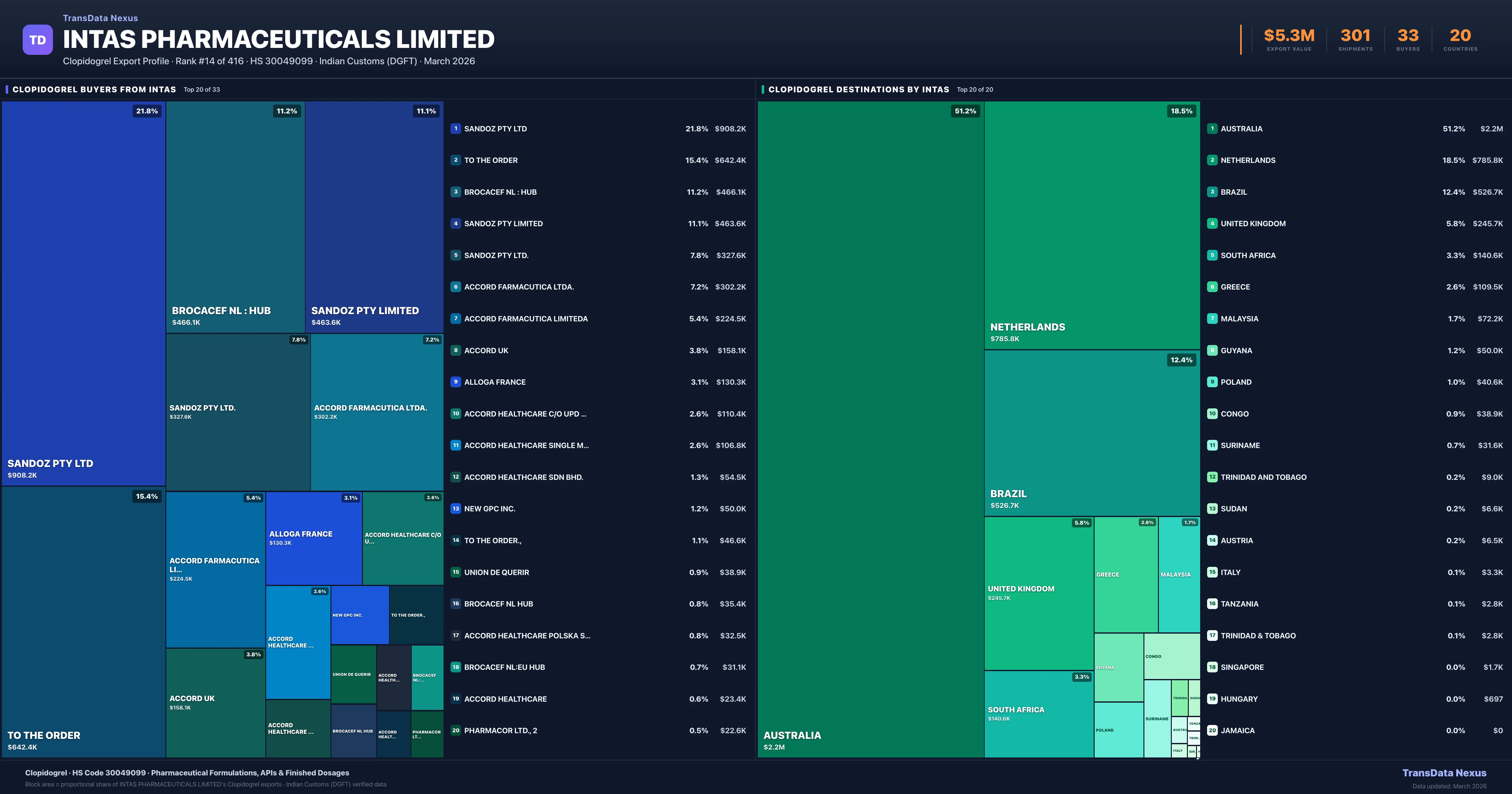 Intas Pharmaceuticals Limited — Clopidogrel Export Profile: Buyers & Destinations