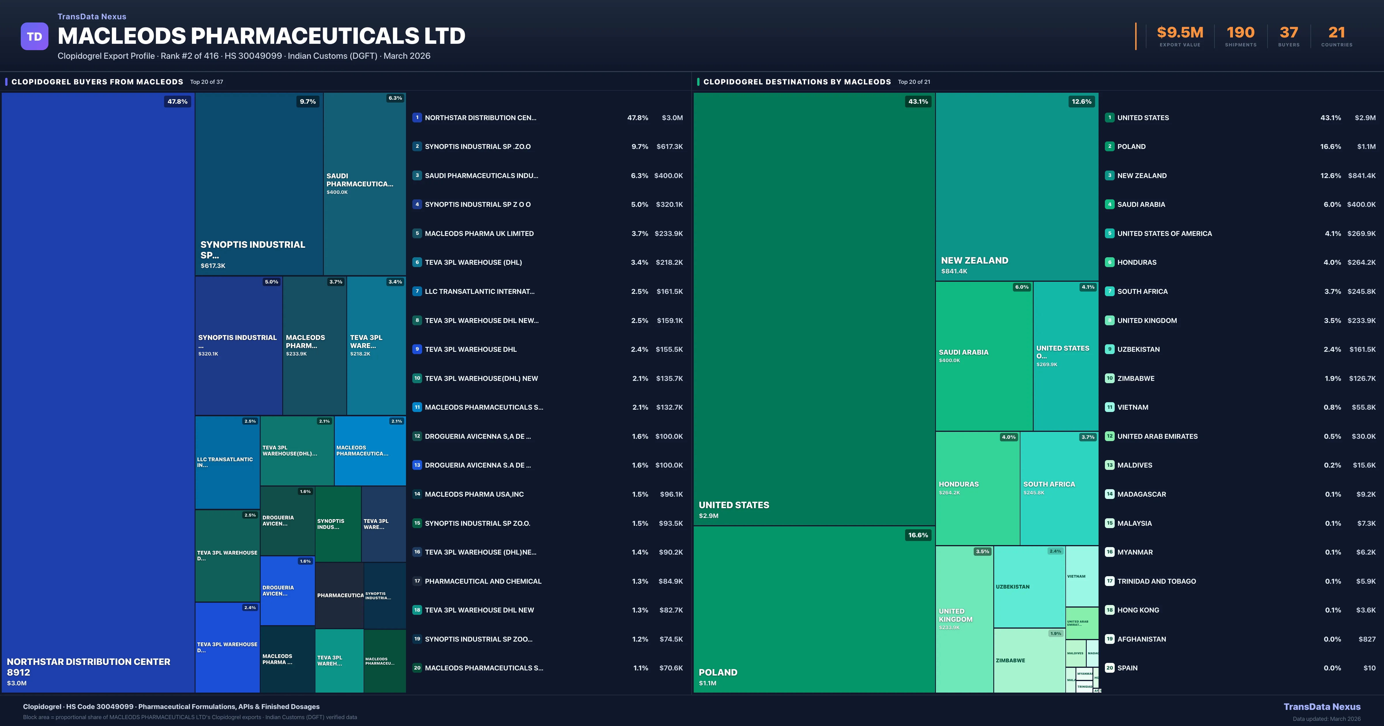 Macleods Pharmaceuticals Ltd — Clopidogrel Export Profile: Buyers & Destinations