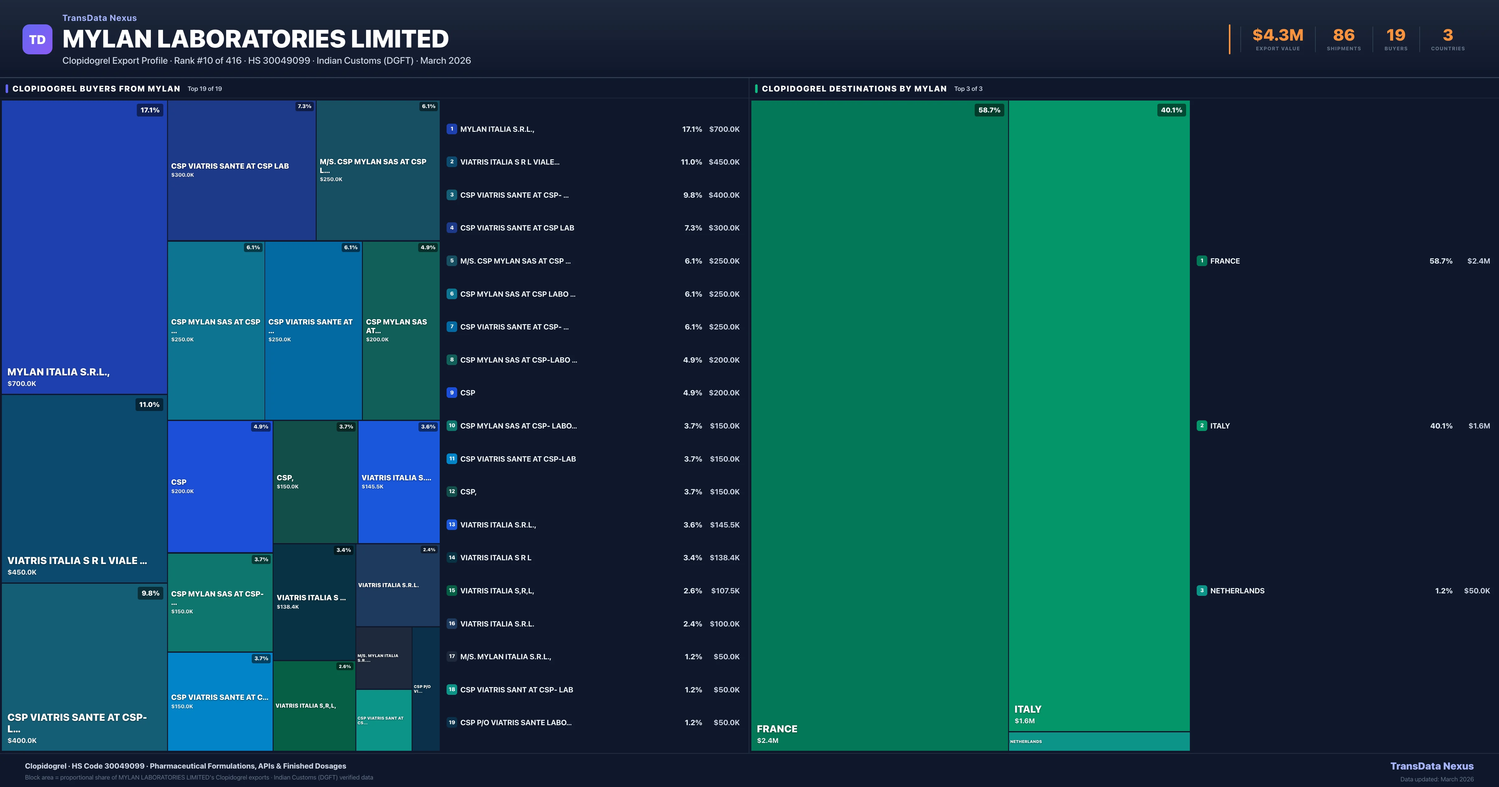 Mylan Laboratories Limited — Clopidogrel Export Profile: Buyers & Destinations