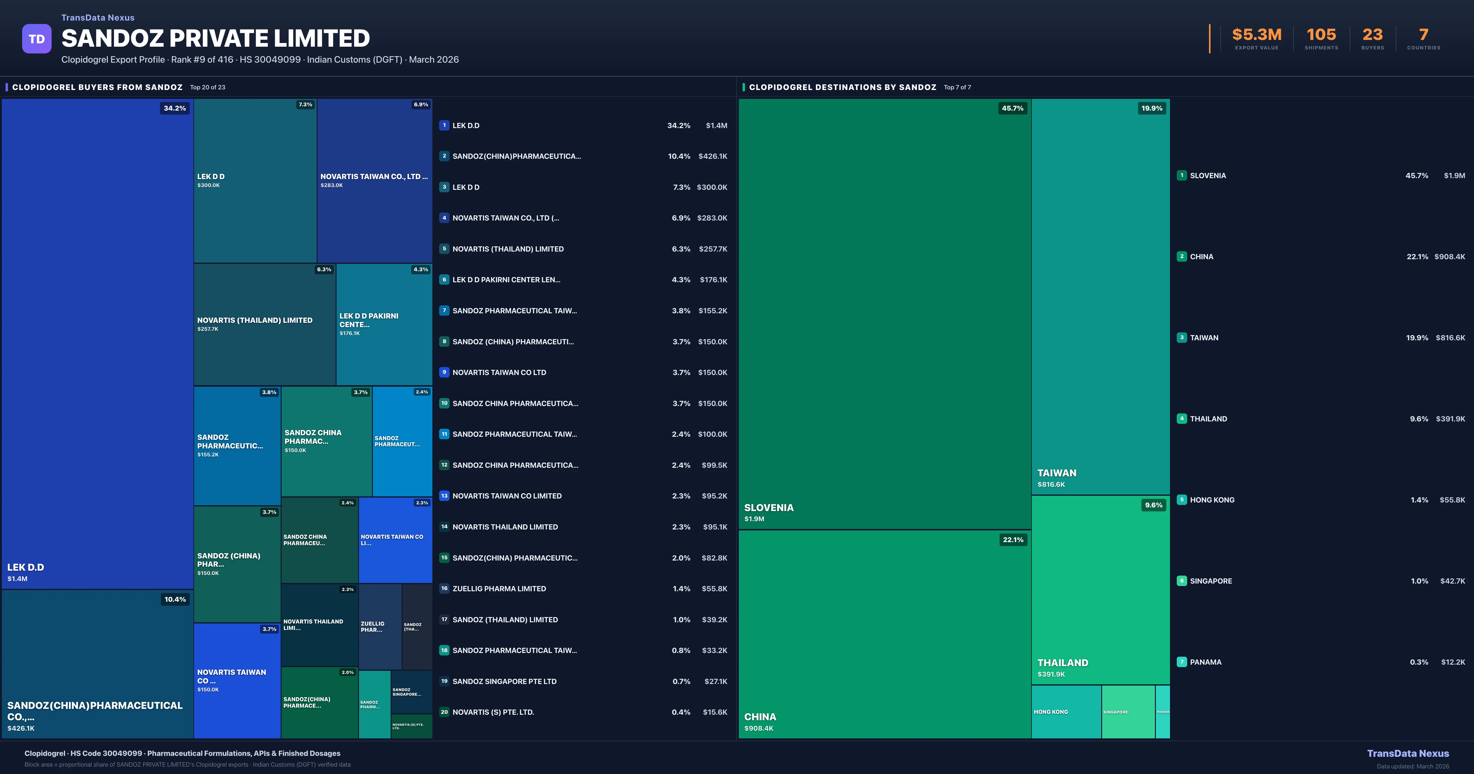 Sandoz Private Limited β Clopidogrel Export Profile: Buyers & Destinations