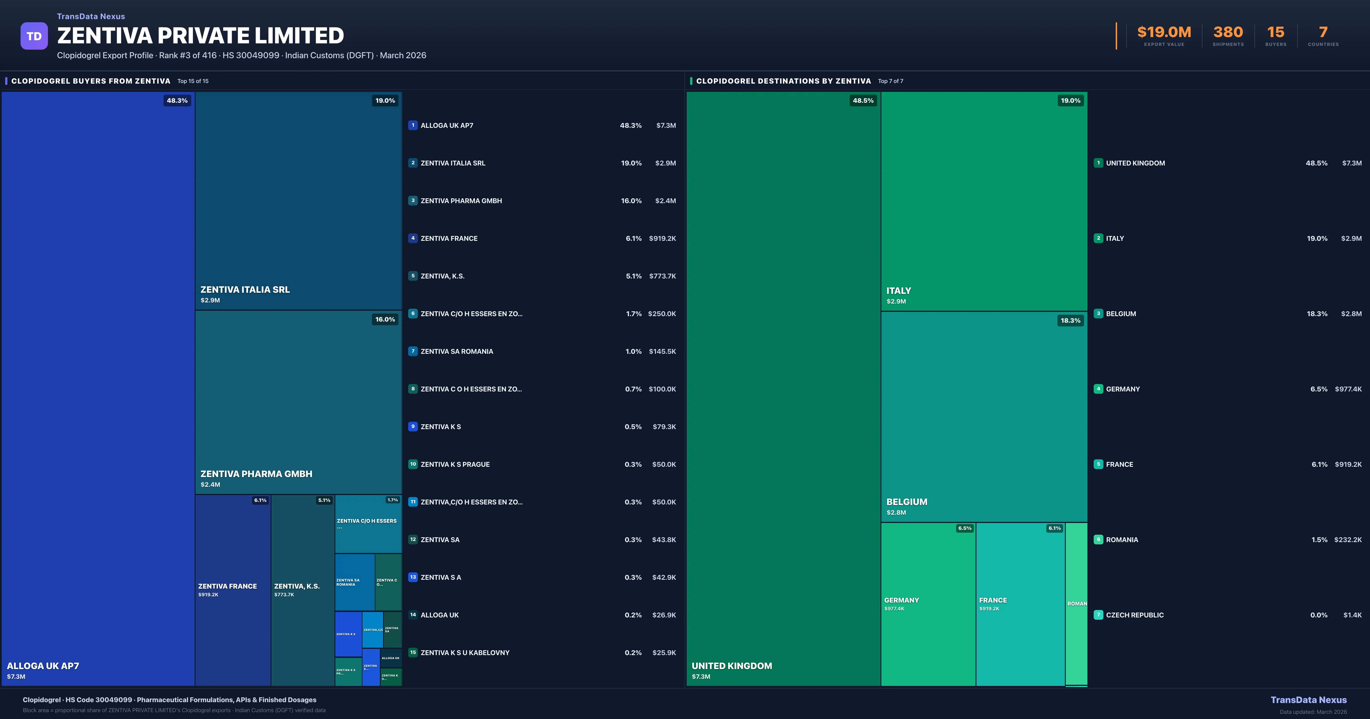 Zentiva Private Limited — Clopidogrel Export Profile: Buyers & Destinations