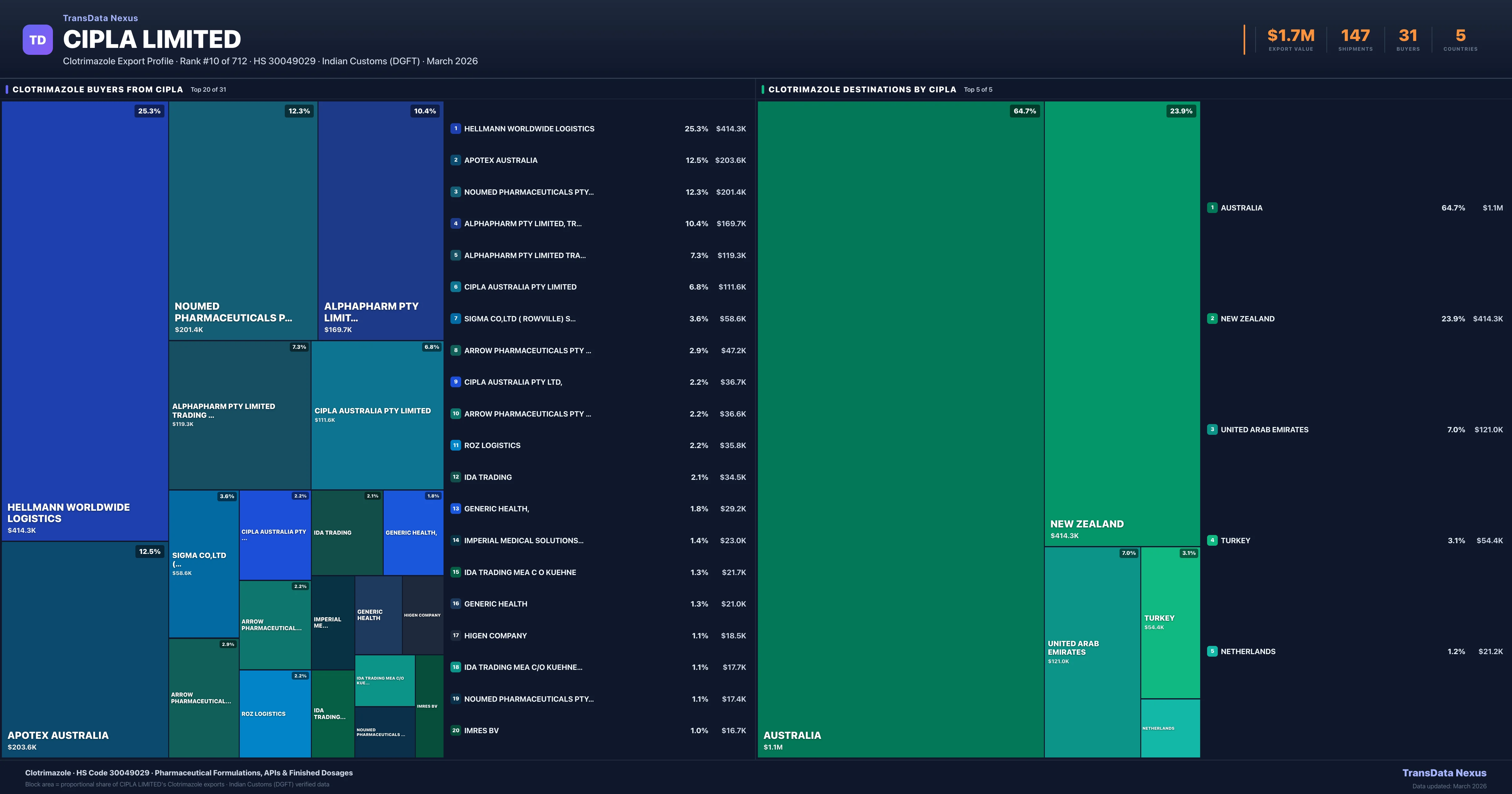 Cipla Limited — Clotrimazole Export Profile: Buyers & Destinations