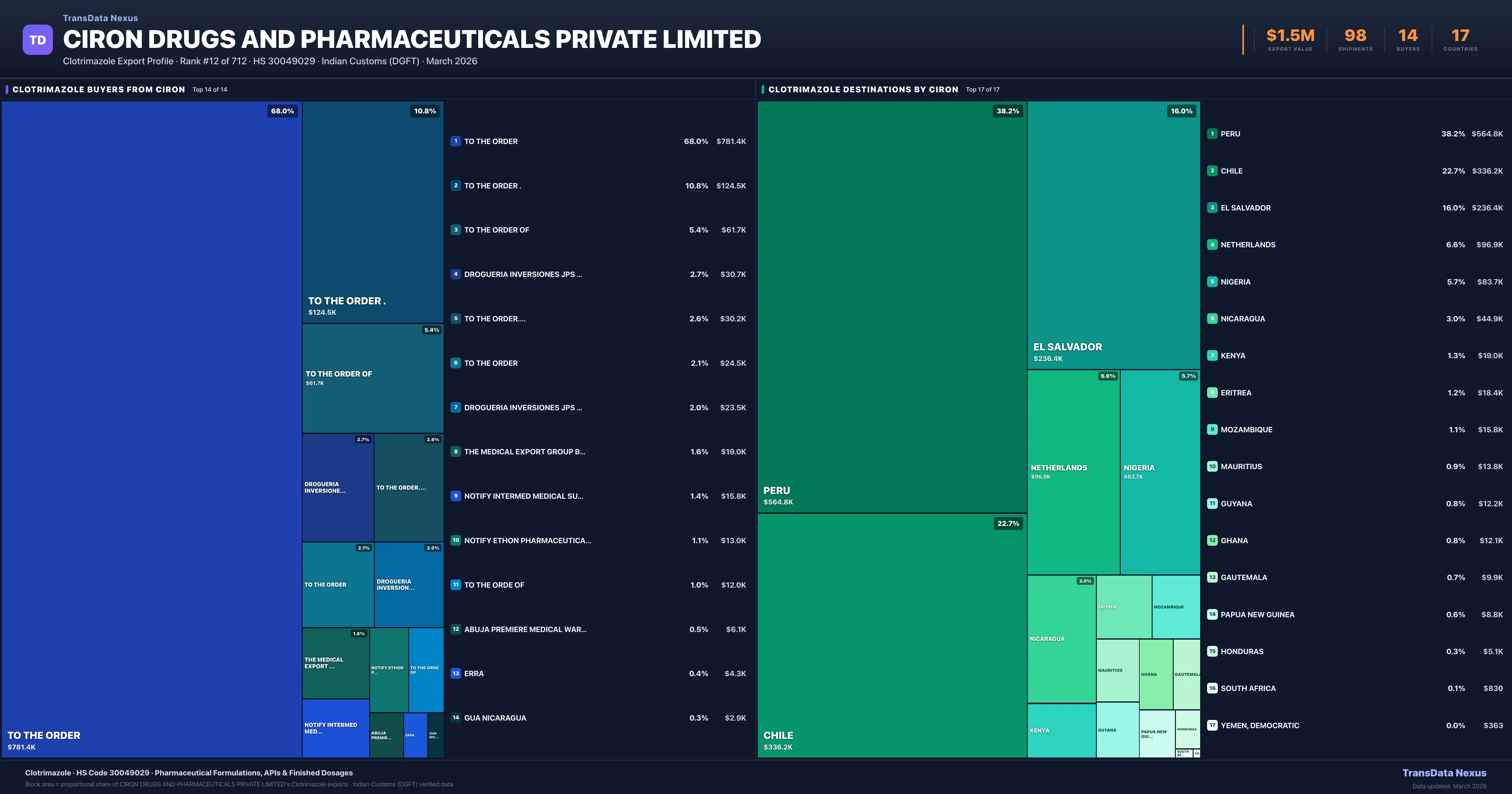 Ciron Drugs AND Pharmaceuticals Private Limited — Clotrimazole Export Profile: Buyers & Destinations