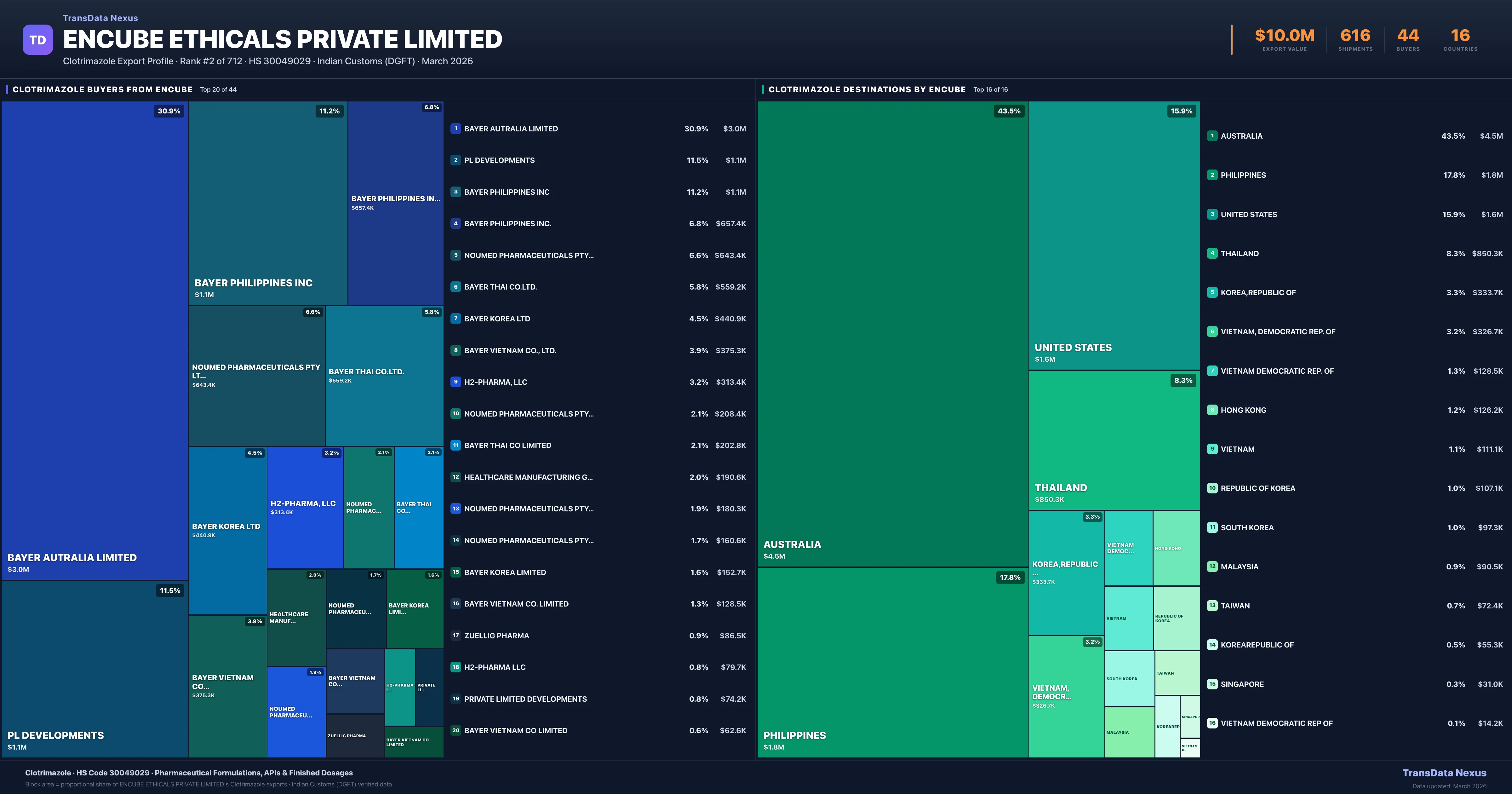 Encube Ethicals Private Limited — Clotrimazole Export Profile: Buyers & Destinations