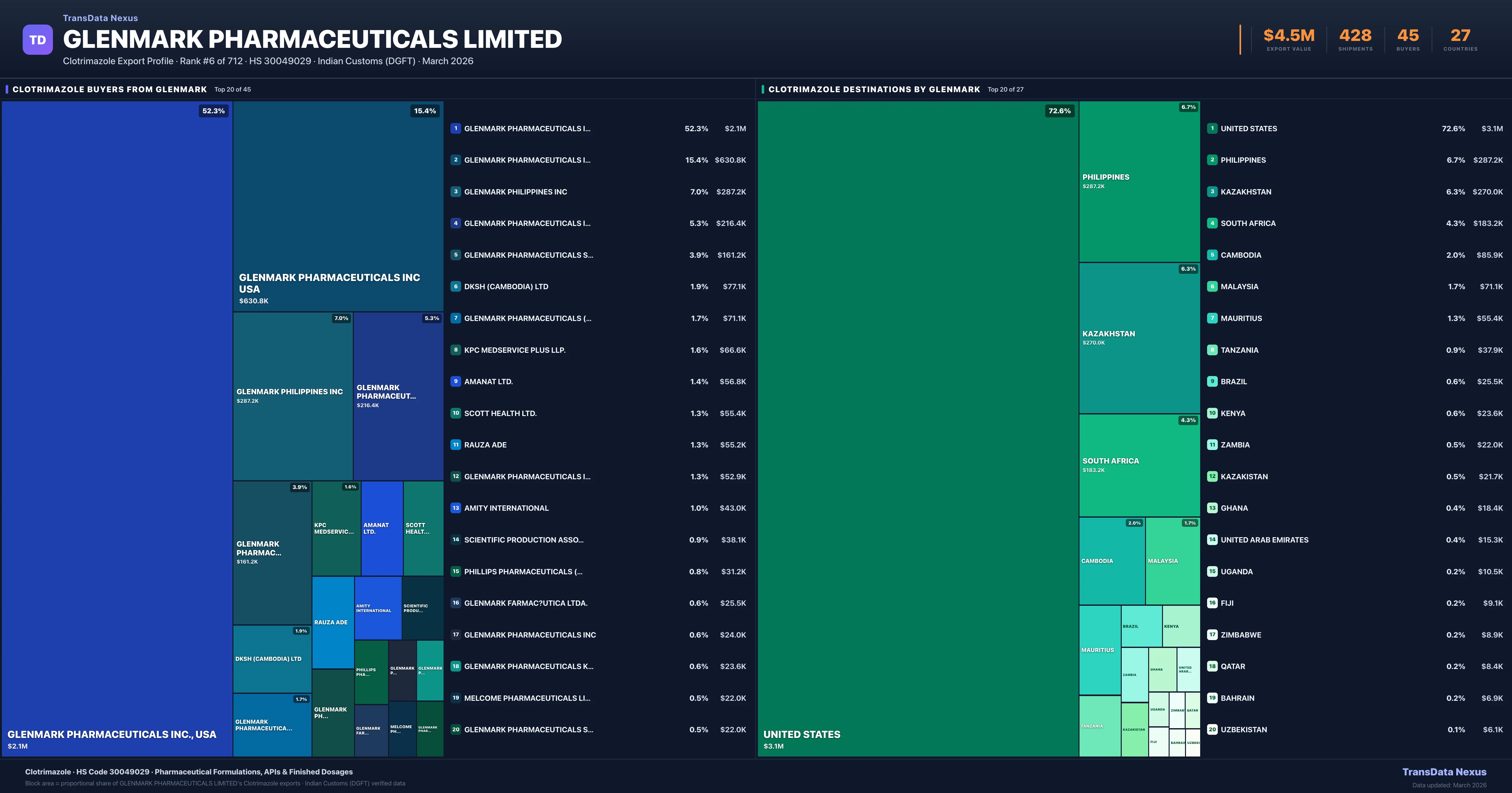 Glenmark Pharmaceuticals Limited β Clotrimazole Export Profile: Buyers & Destinations