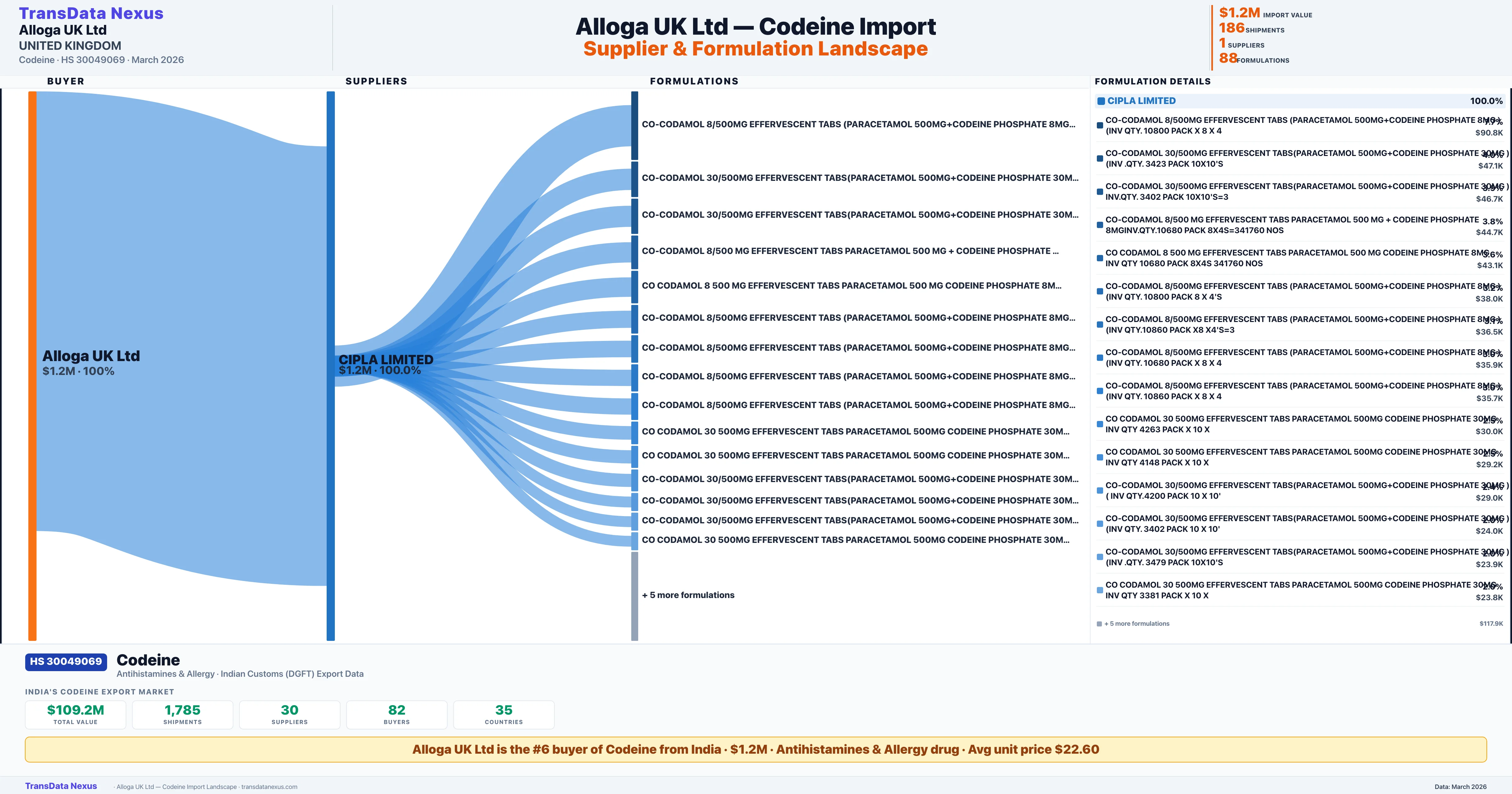 ALLOGA UK LTD β Codeine Import Profile: Suppliers, Formulations & Sources