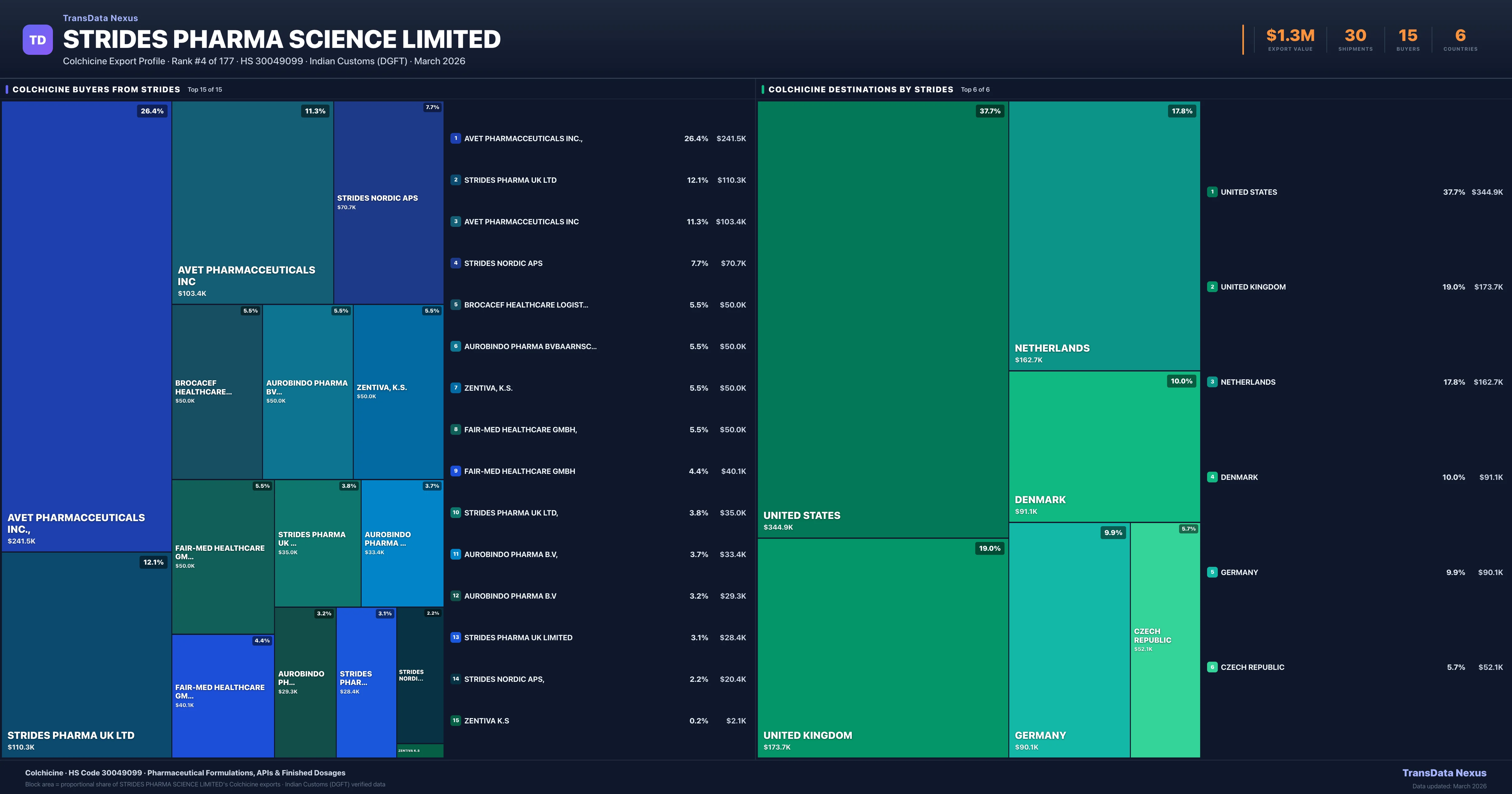 Strides Pharma Science Limited — Colchicine Export Profile: Buyers & Destinations