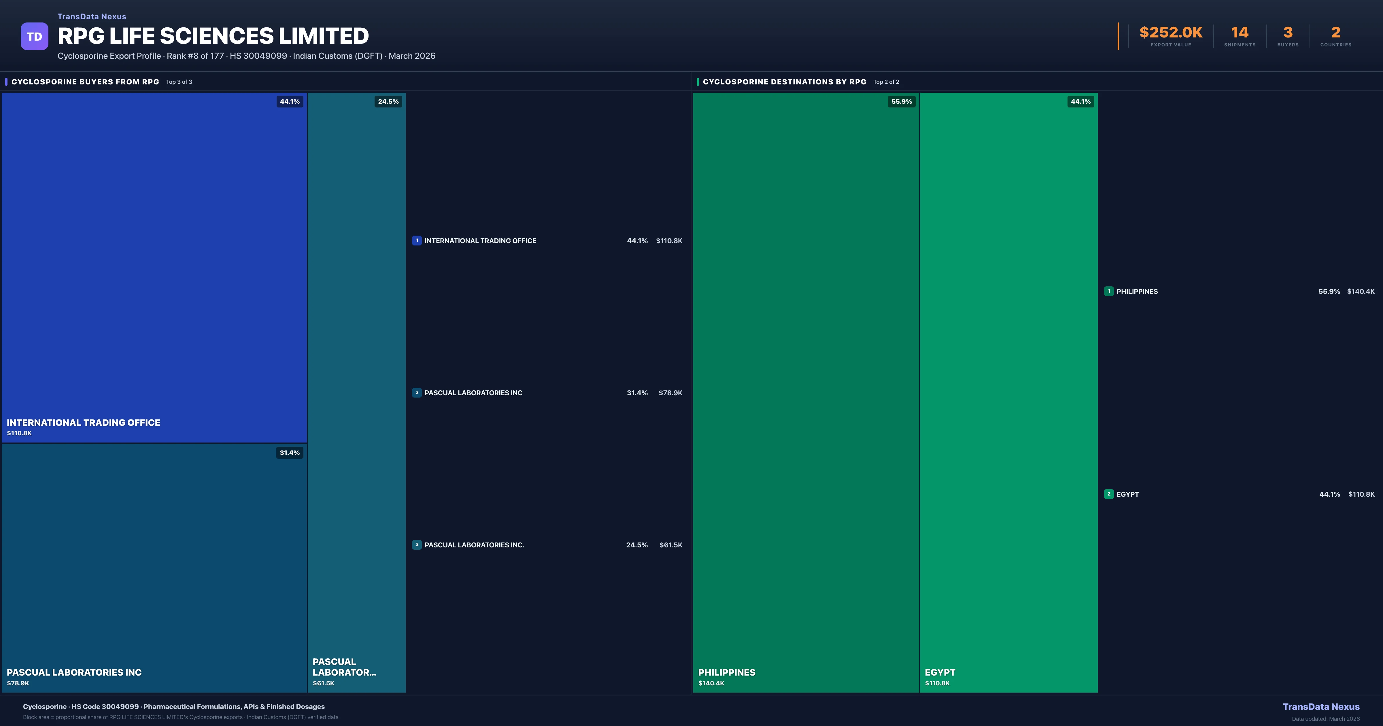 RPG Life Sciences Limited — Cyclosporine Export Profile: Buyers & Destinations