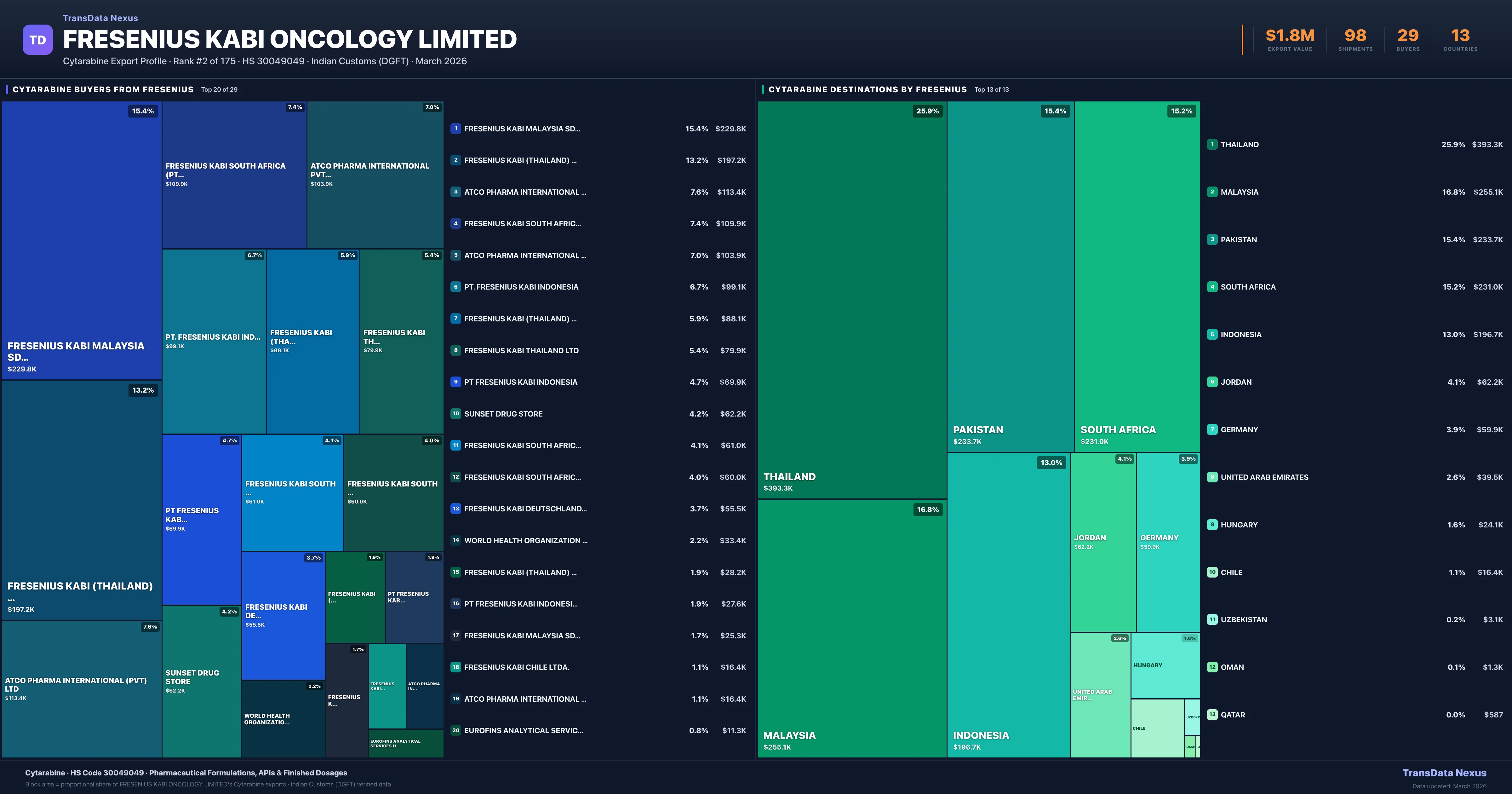 Fresenius Kabi Oncology Limited — Cytarabine Export Profile: Buyers & Destinations