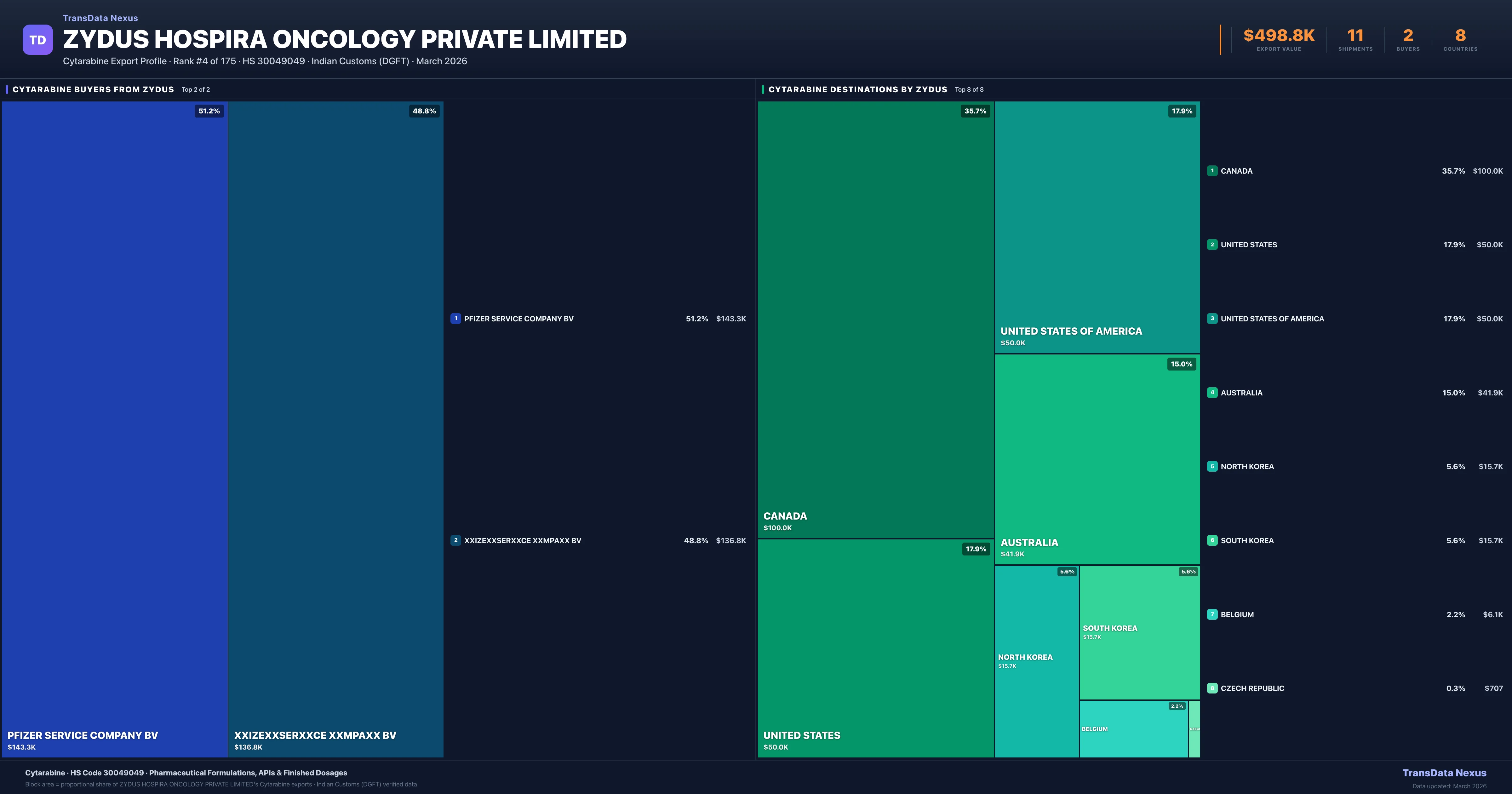 Zydus Hospira Oncology Private Limited — Cytarabine Export Profile: Buyers & Destinations