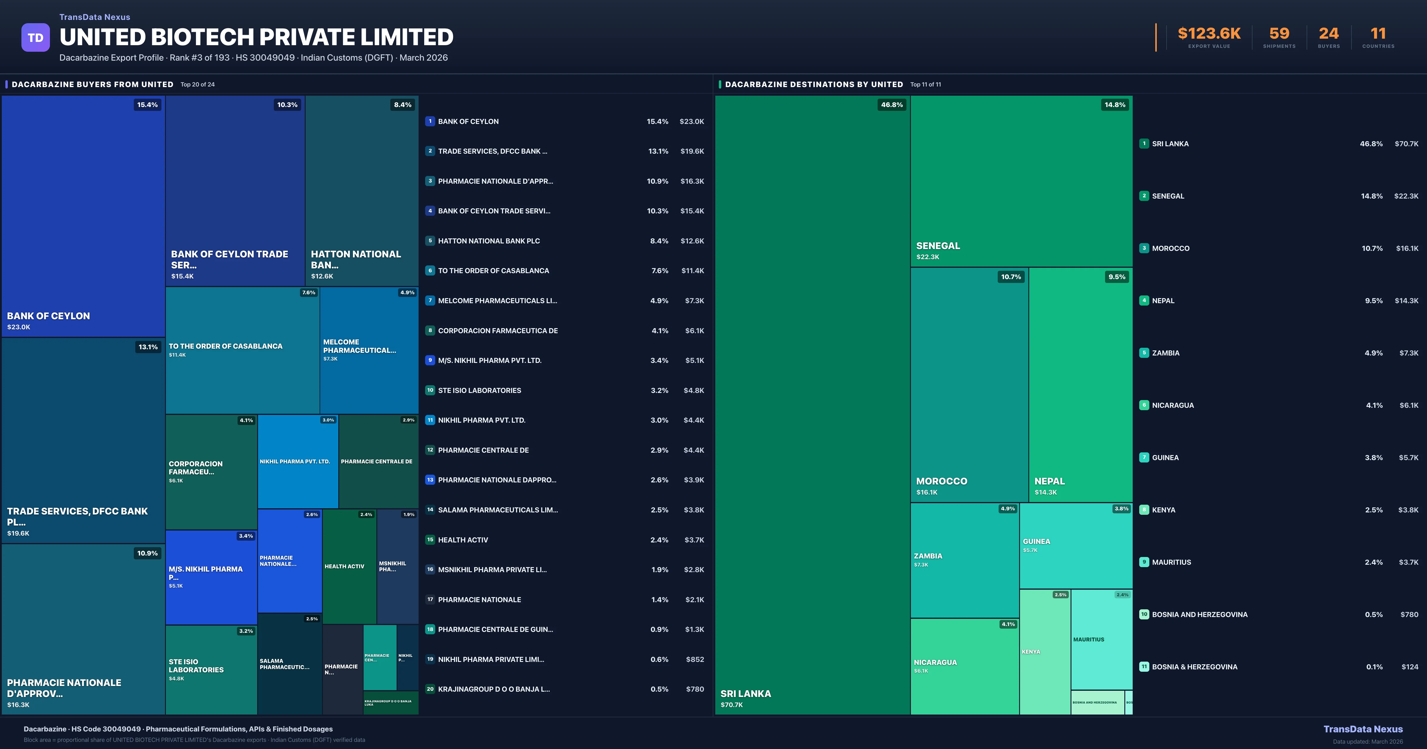 United Biotech Private Limited — Dacarbazine Export Profile: Buyers & Destinations