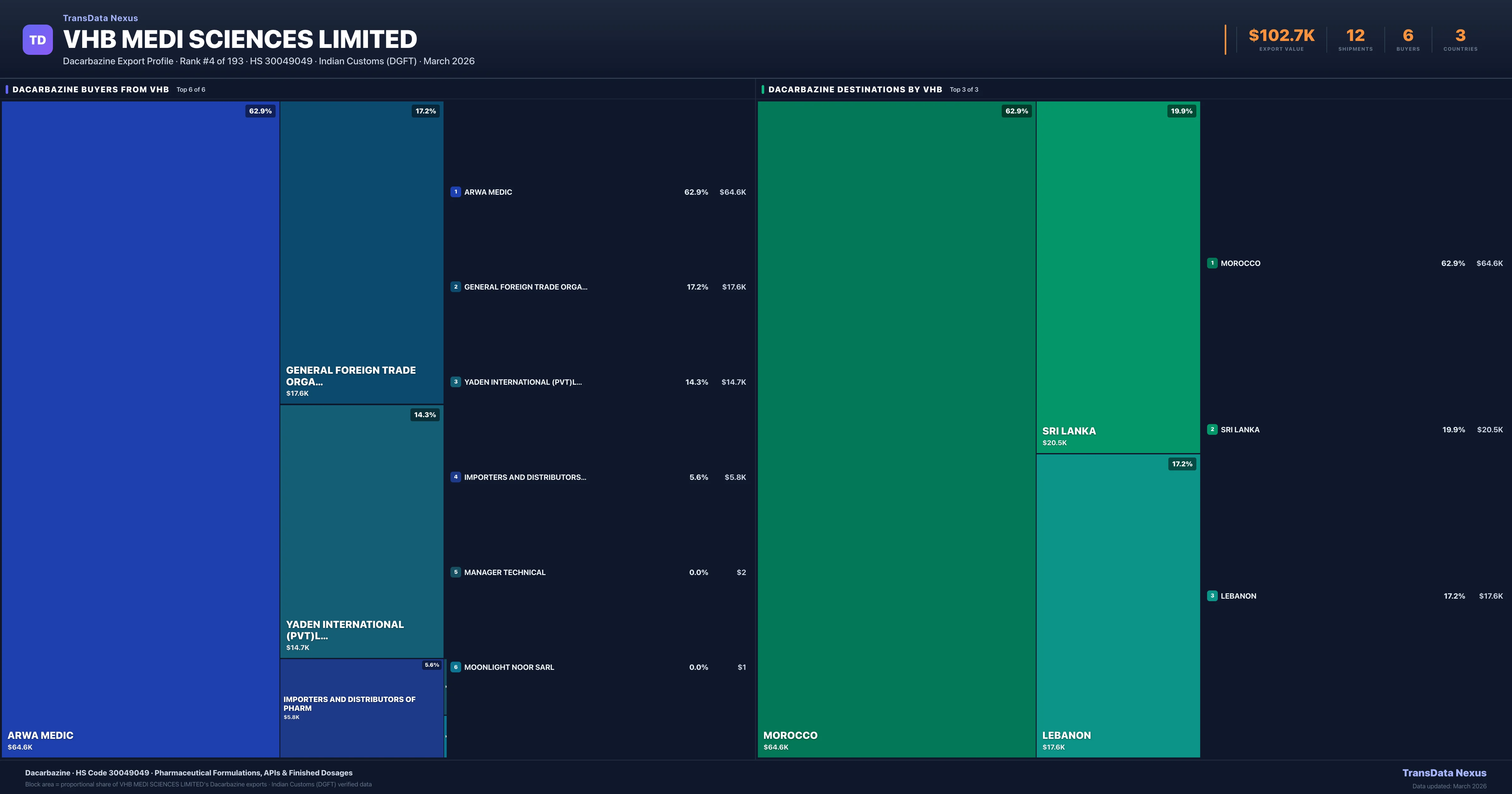 VHB Medi Sciences Limited — Dacarbazine Export Profile: Buyers & Destinations