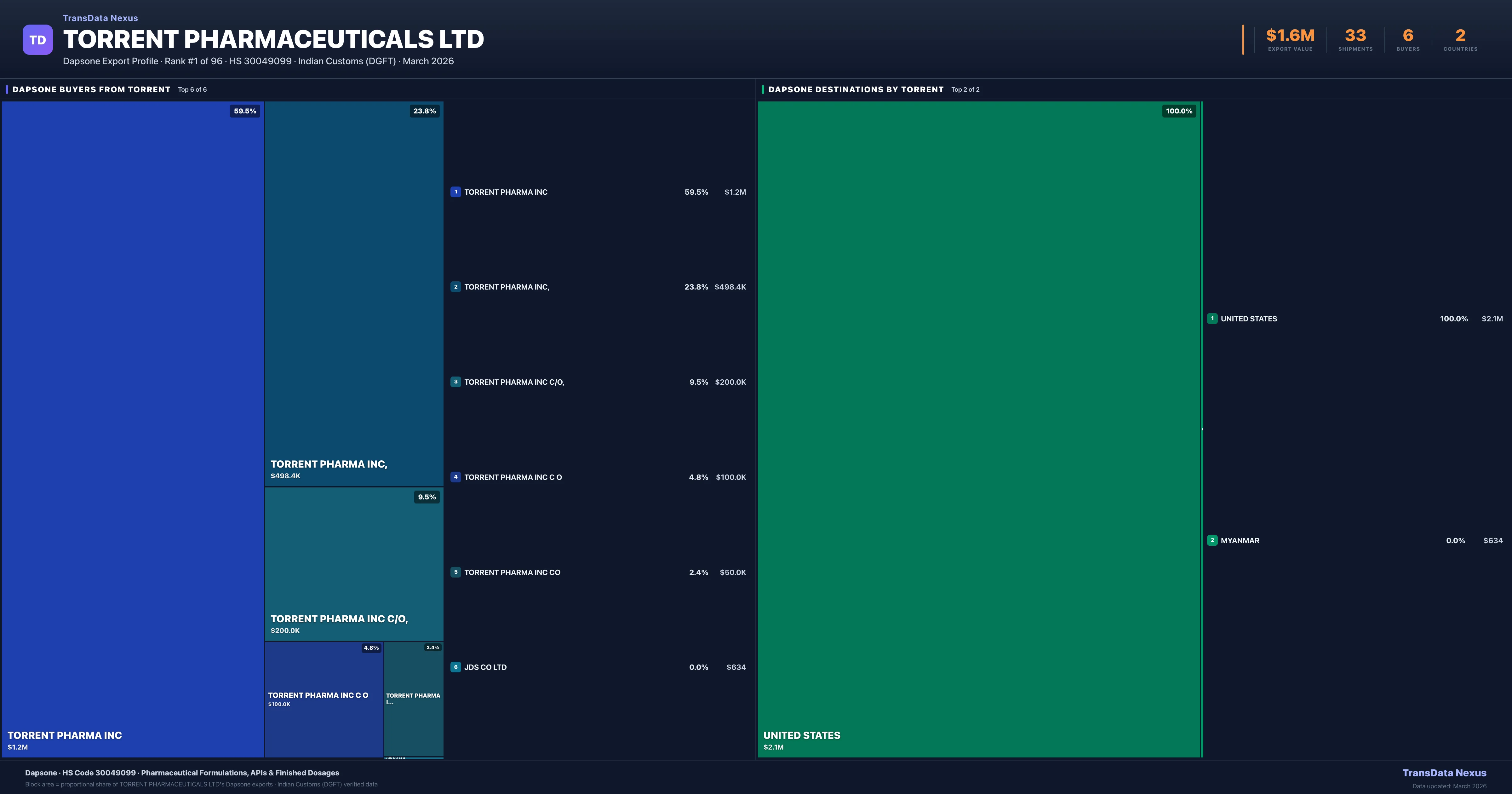Torrent Pharmaceuticals Ltd — Dapsone Export Profile: Buyers & Destinations