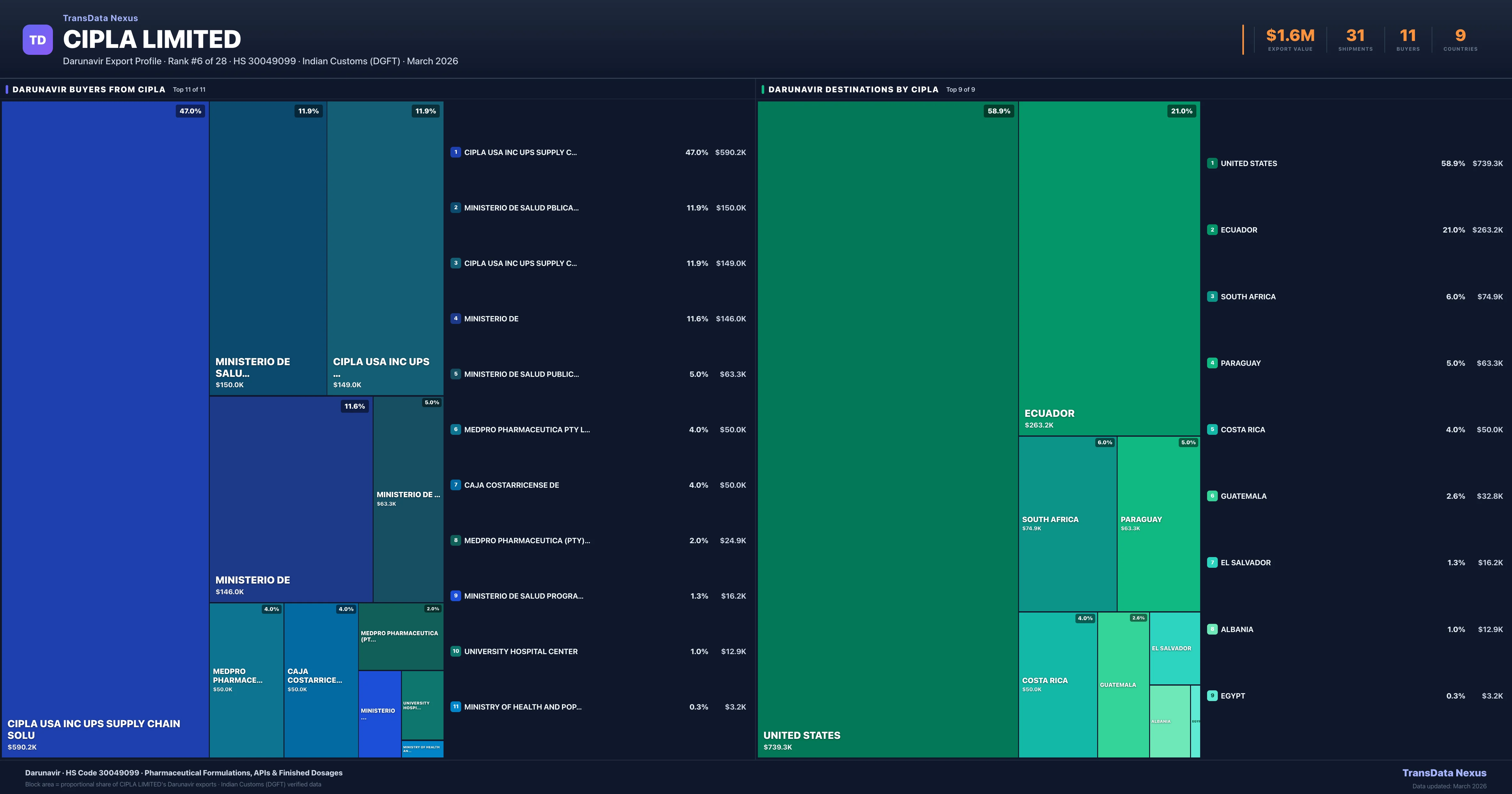 Cipla Limited — Darunavir Export Profile: Buyers & Destinations