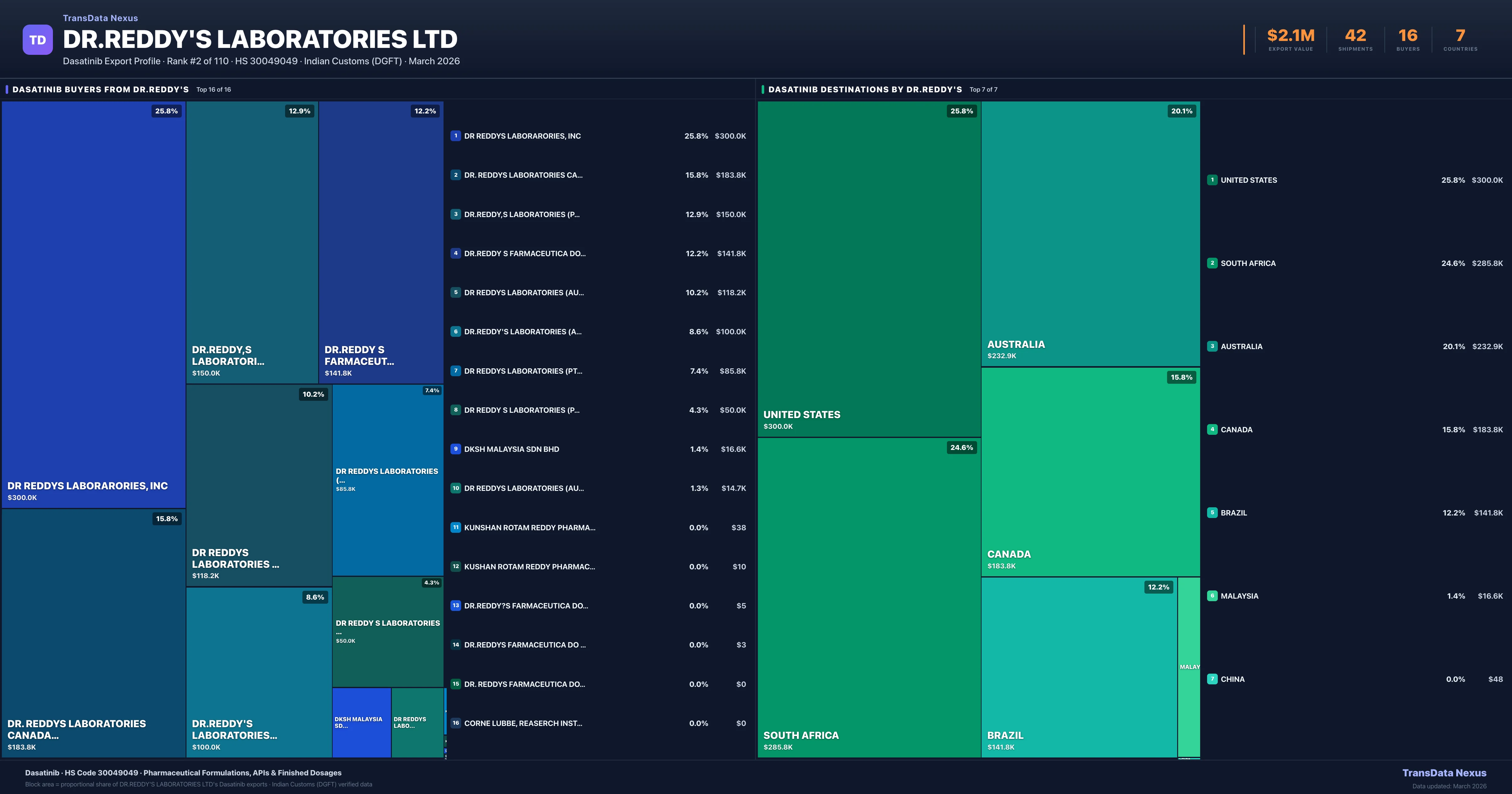 Dr.reddy's Laboratories Ltd — Dasatinib Export Profile: Buyers & Destinations