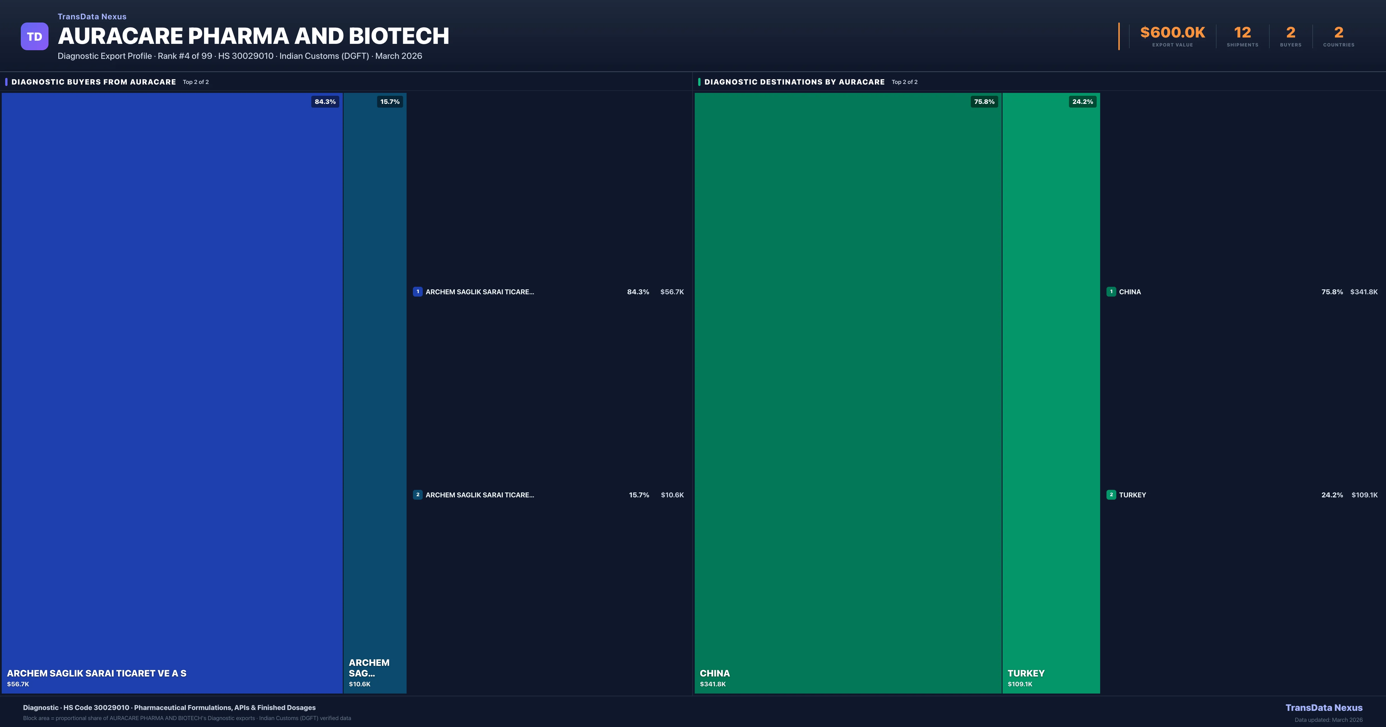 Auracare Pharma And Biotech — Diagnostic Export Profile: Buyers & Destinations