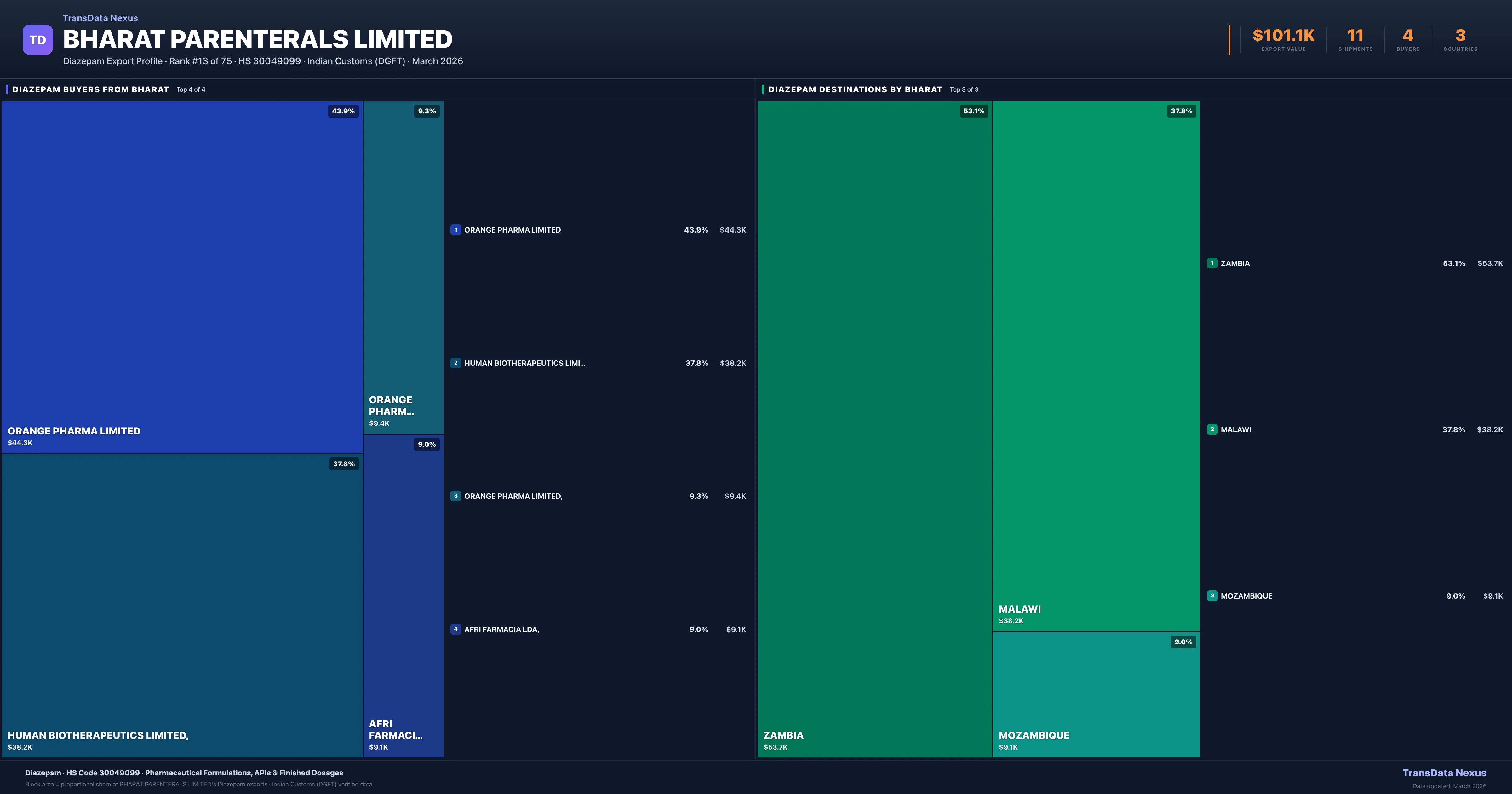 Bharat Parenterals Limited β Diazepam Export Profile: Buyers & Destinations