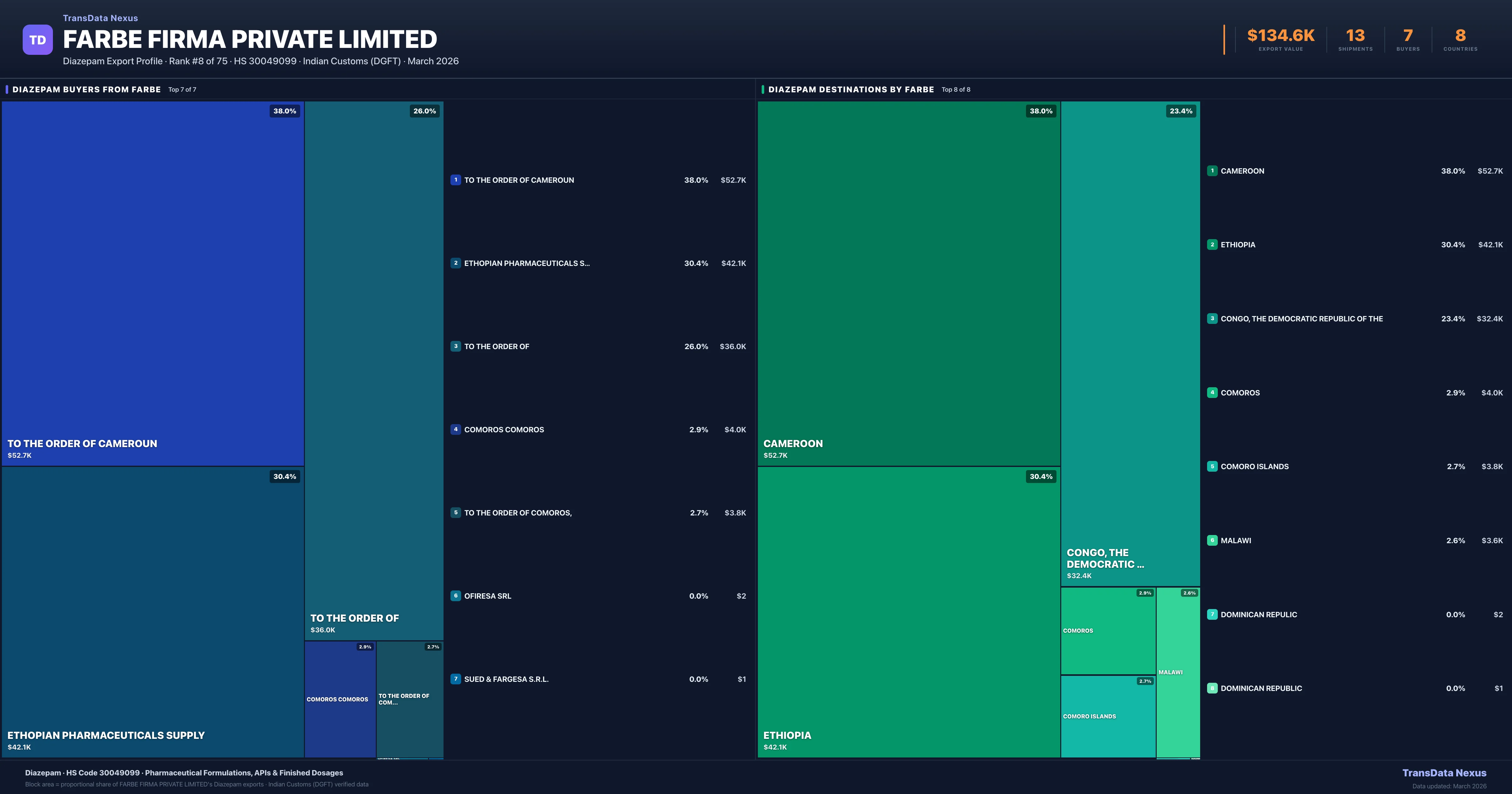 Farbe Firma Private Limited β Diazepam Export Profile: Buyers & Destinations