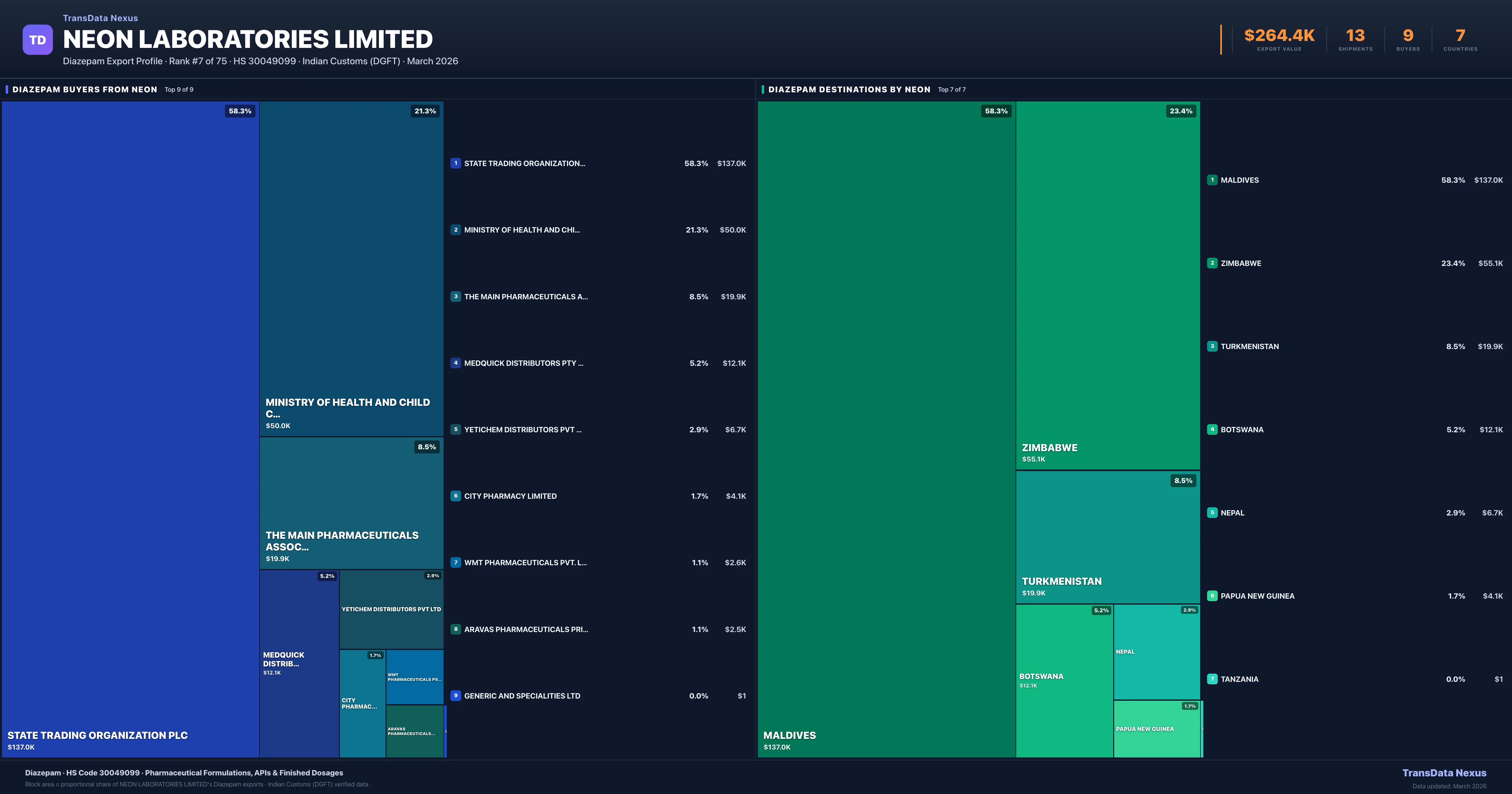 Neon Laboratories Limited — Diazepam Export Profile: Buyers & Destinations