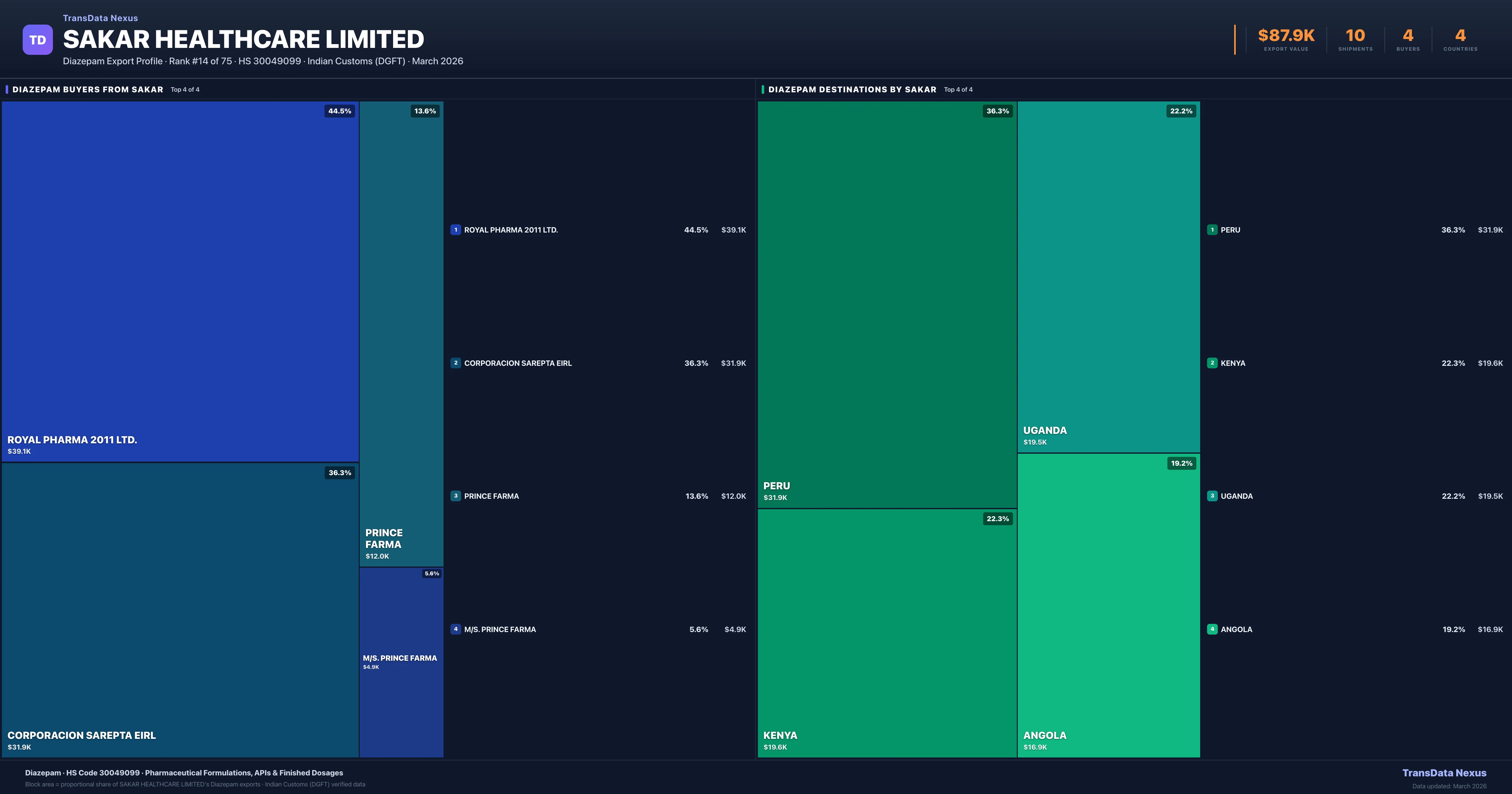 Sakar Healthcare Limited β Diazepam Export Profile: Buyers & Destinations