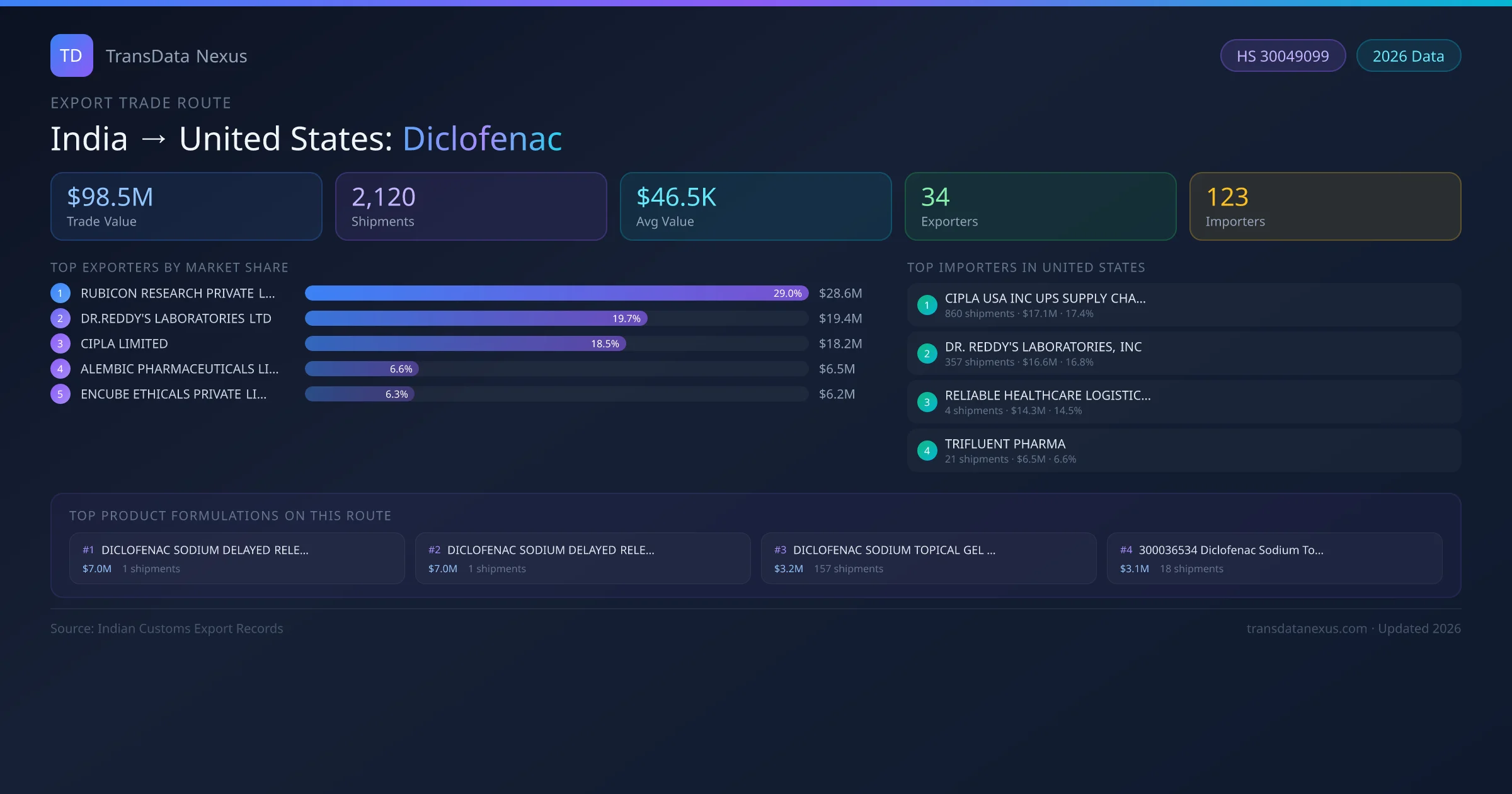 - 1.Route Identification: India to United States export trade corridor identified from Indian Customs (DGFT) records for Diclofenac.