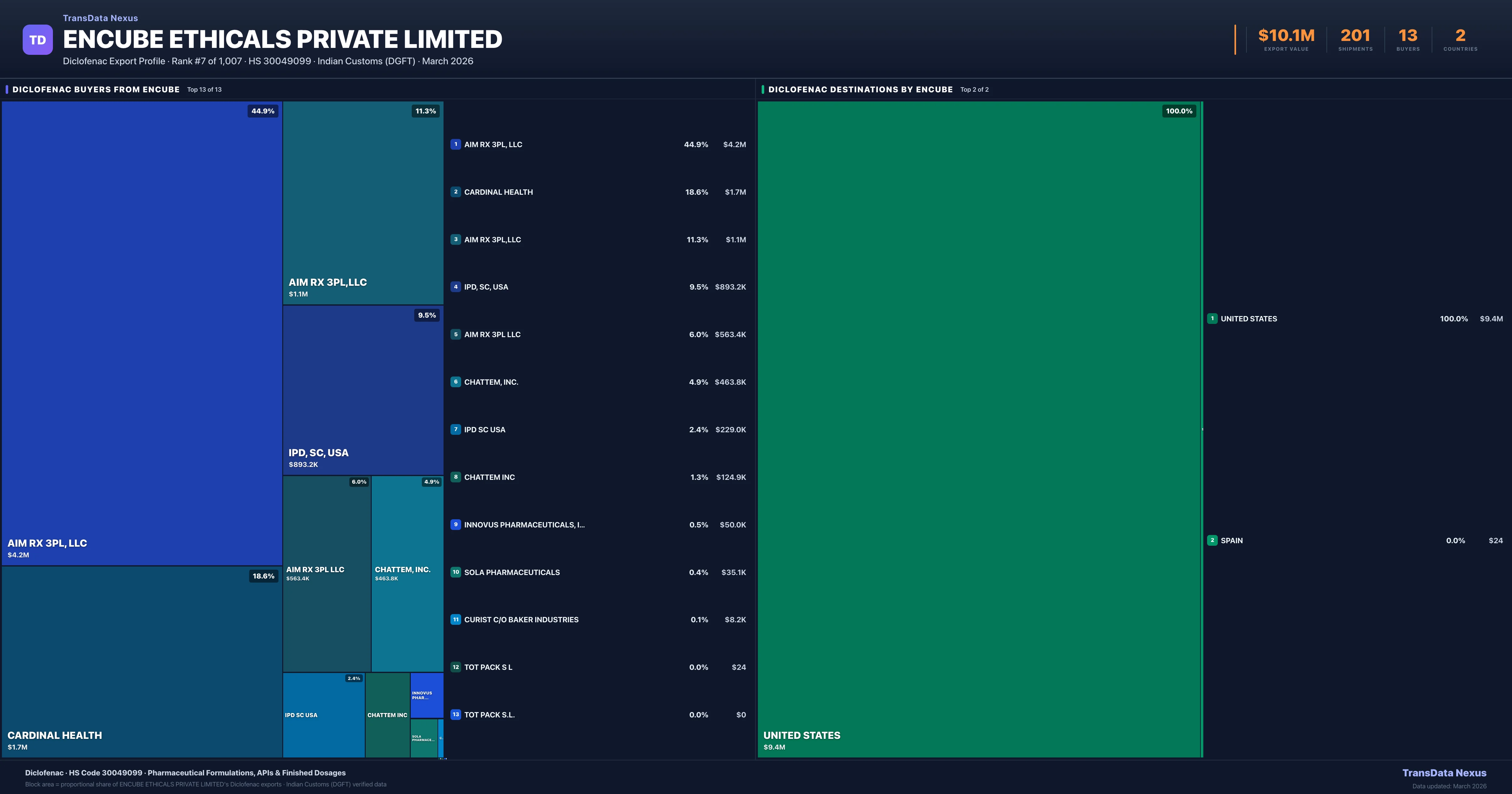 Encube Ethicals Private Limited — Diclofenac Export Profile: Buyers & Destinations
