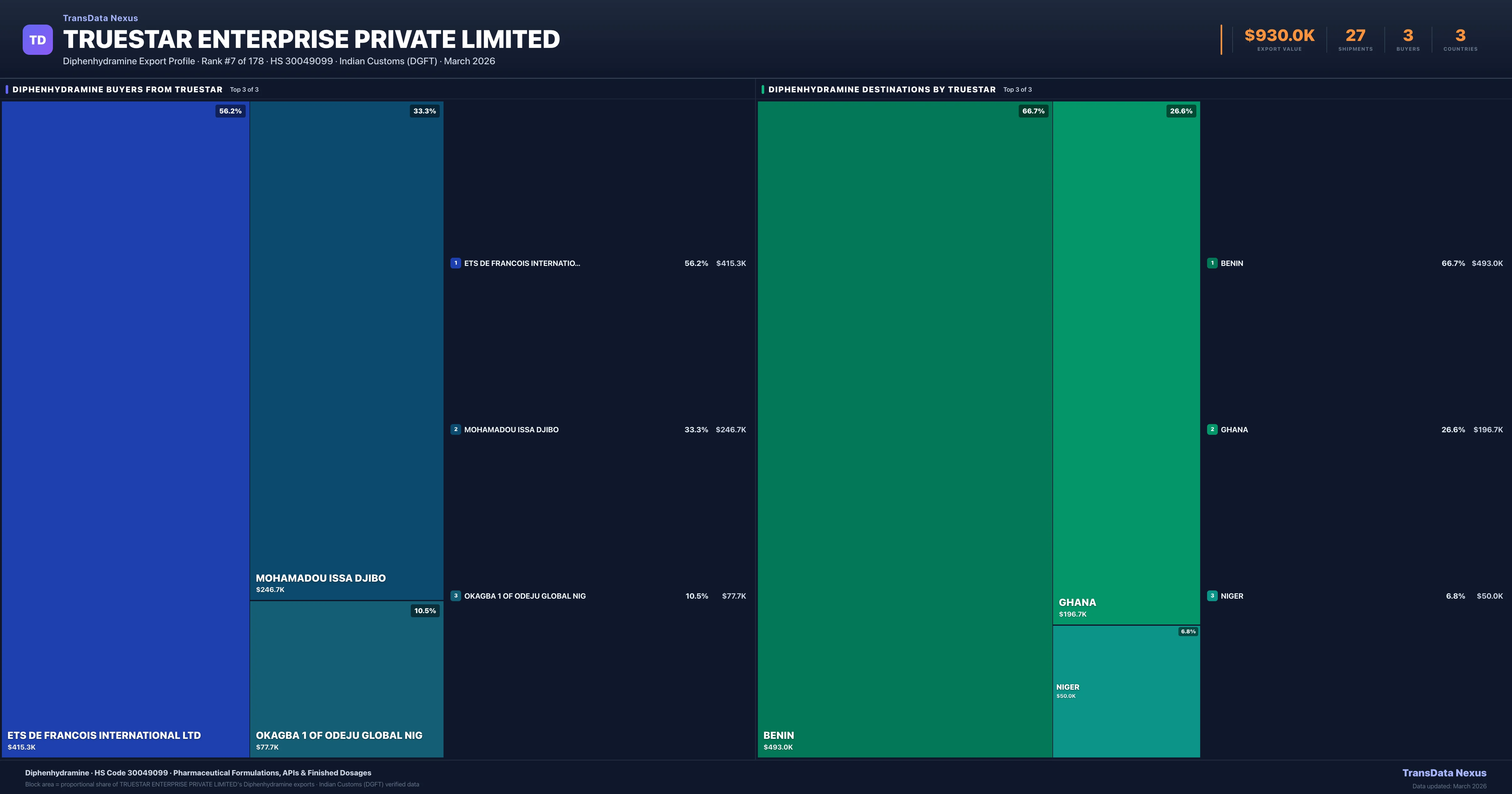 Truestar Enterprise Private Limited — Diphenhydramine Export Profile: Buyers & Destinations