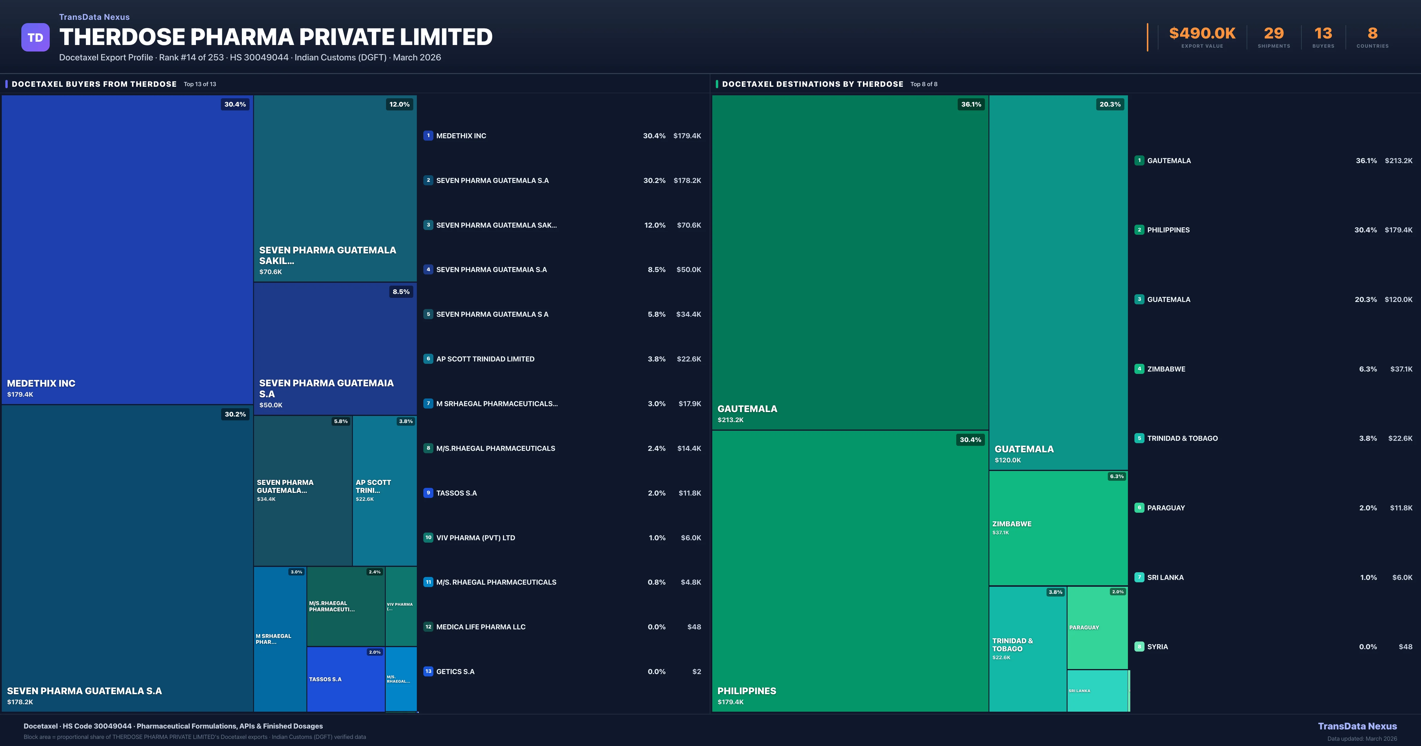 Therdose Pharma Private Limited — Docetaxel Export Profile: Buyers & Destinations