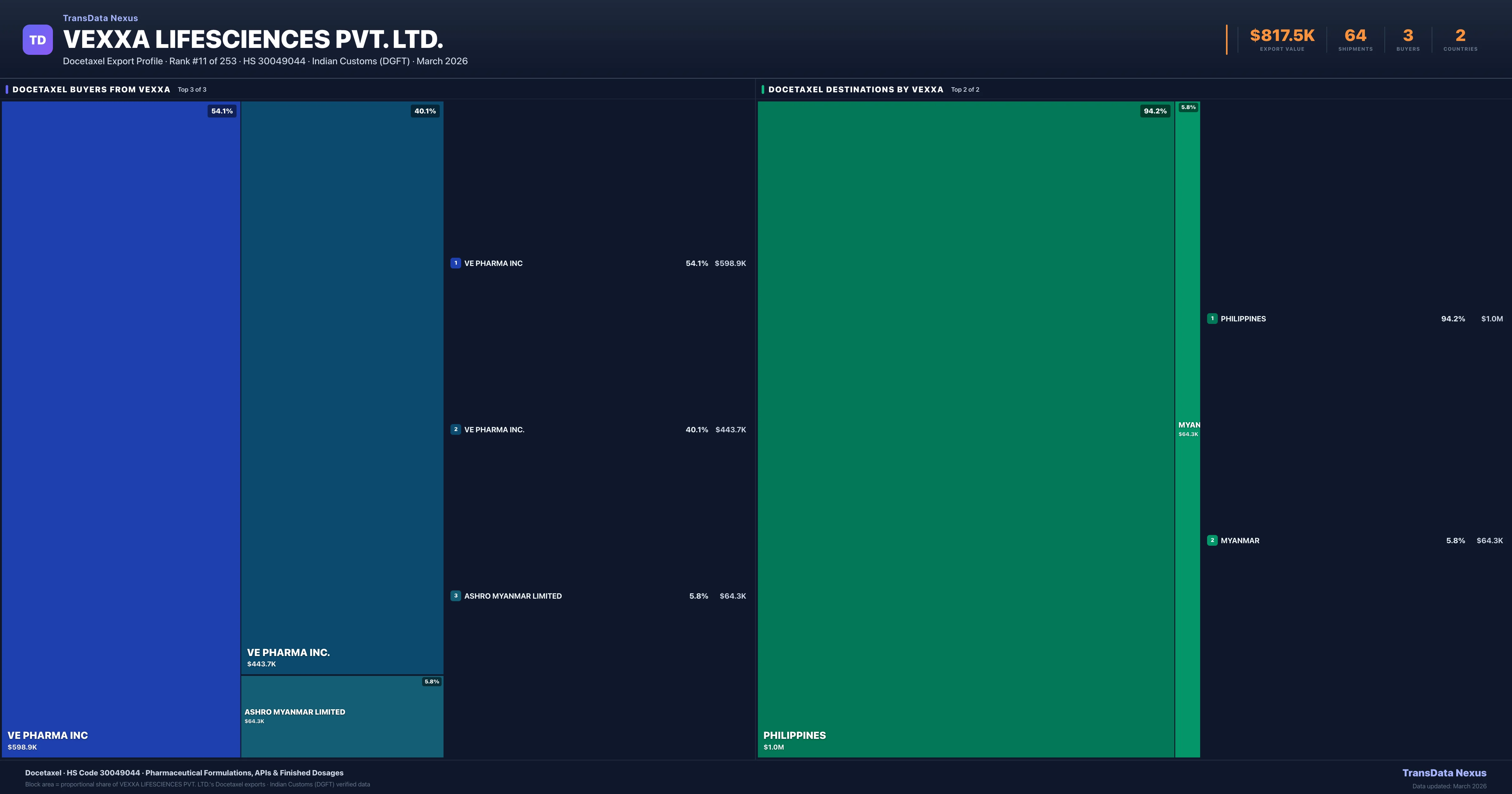 Vexxa Lifesciences Pvt. Ltd. β Docetaxel Export Profile: Buyers & Destinations