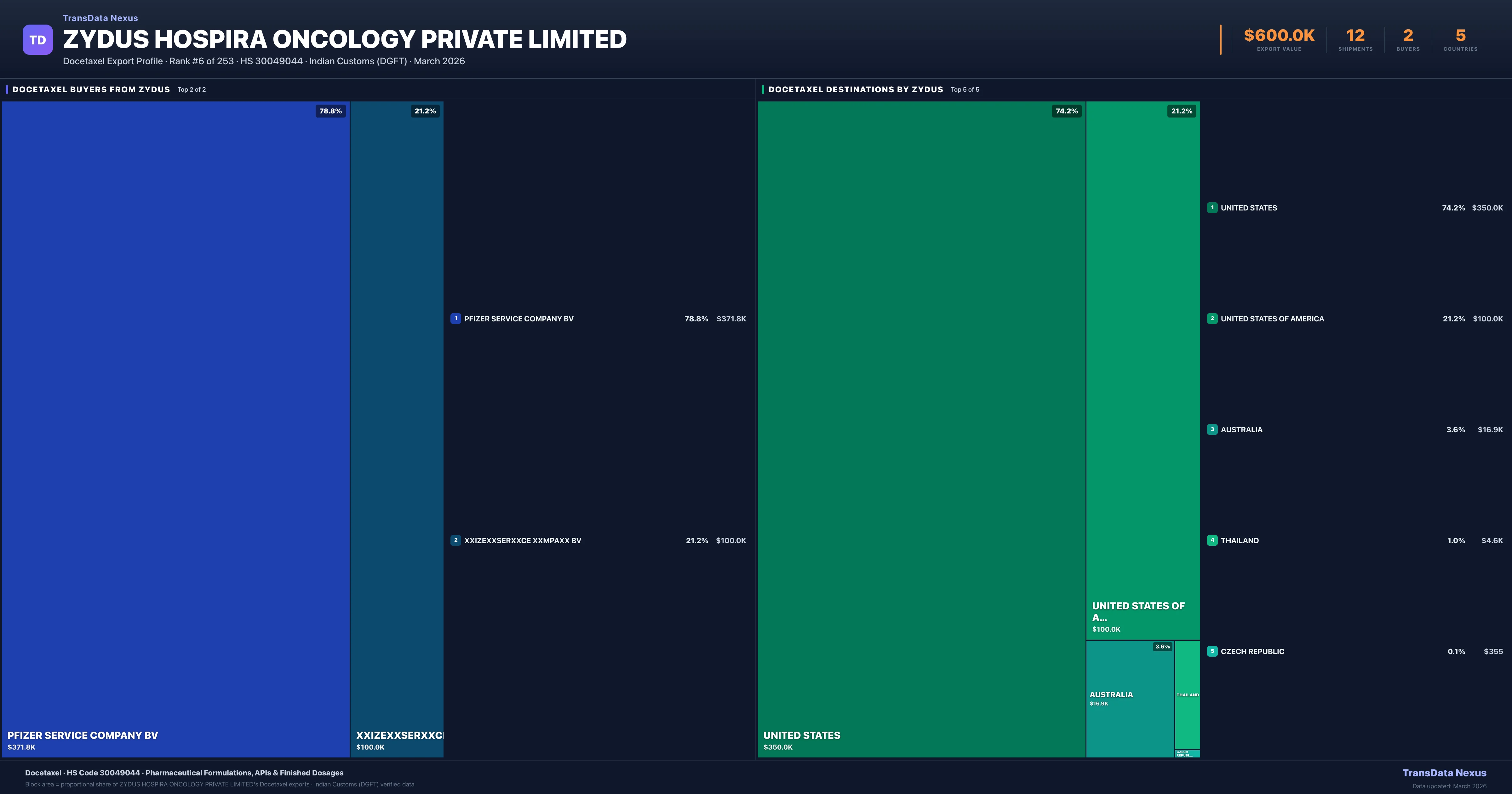 Zydus Hospira Oncology Private Limited — Docetaxel Export Profile: Buyers & Destinations