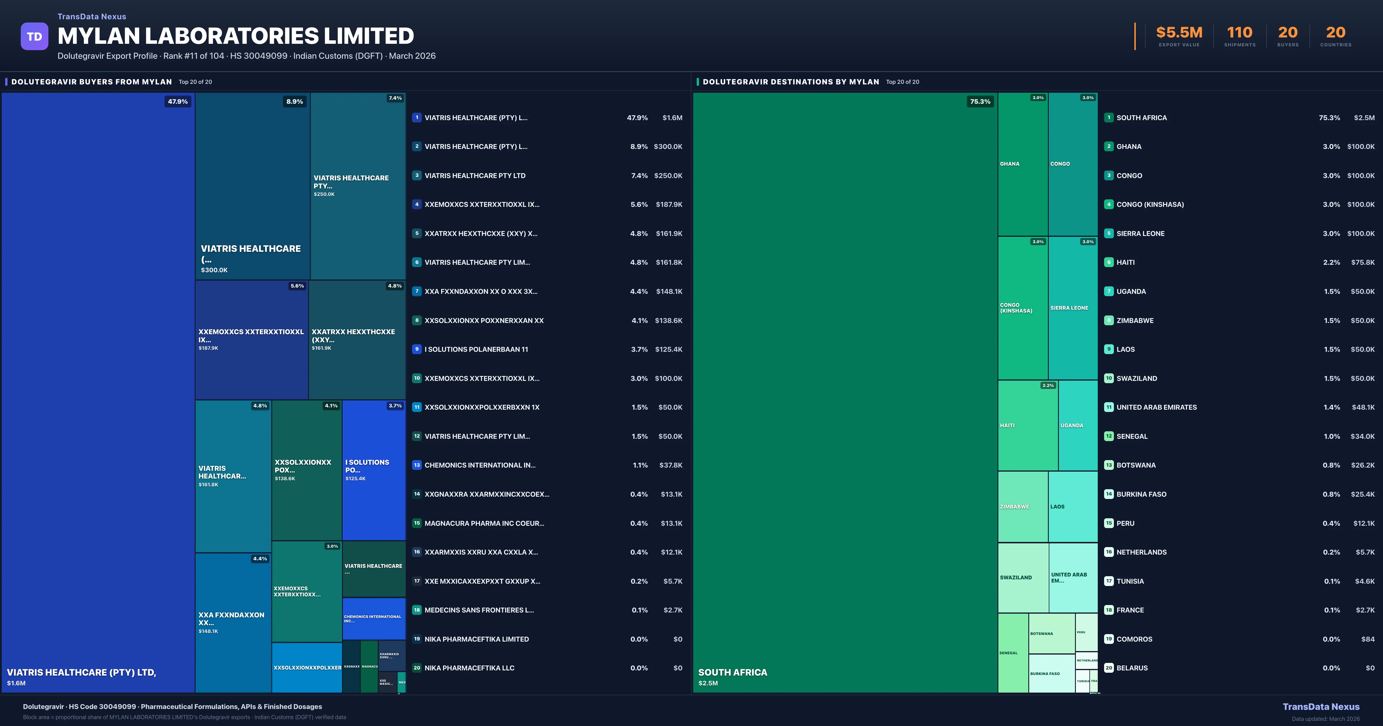 Mylan Laboratories Limited — Dolutegravir Export Profile: Buyers & Destinations