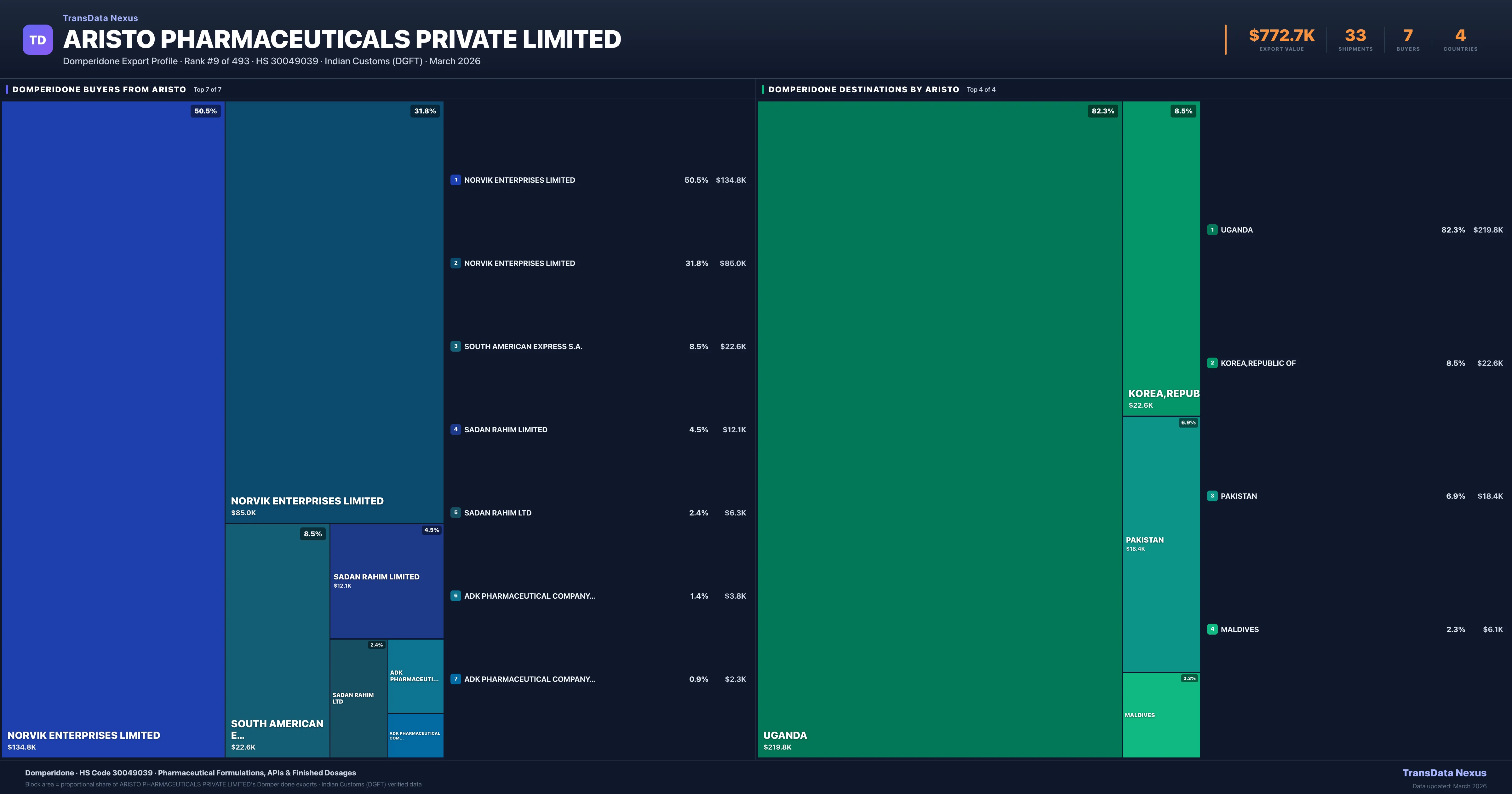 Aristo Pharmaceuticals Private Limited — Domperidone Export Profile: Buyers & Destinations