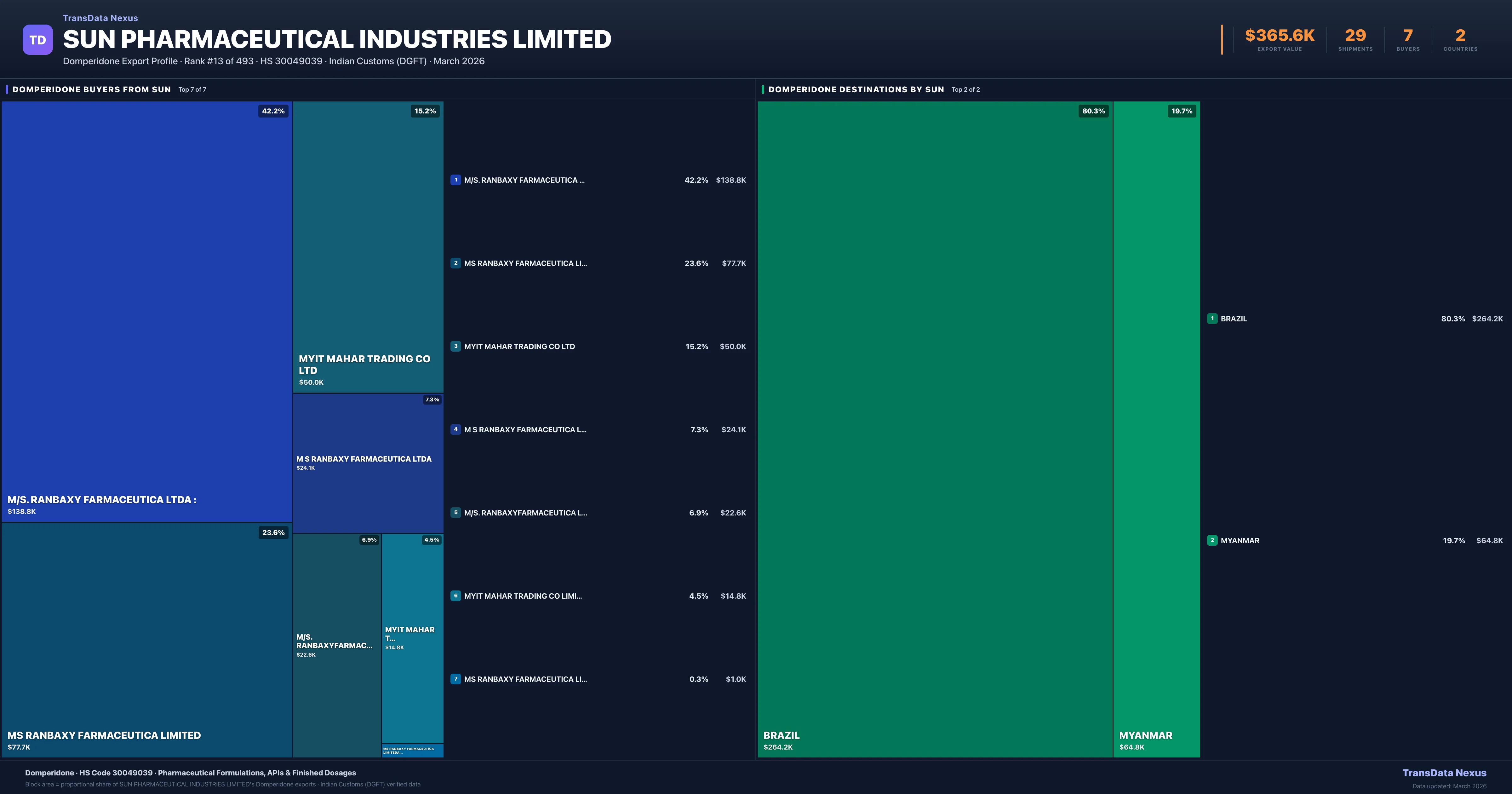 SUN Pharmaceutical Industries Limited — Domperidone Export Profile: Buyers & Destinations