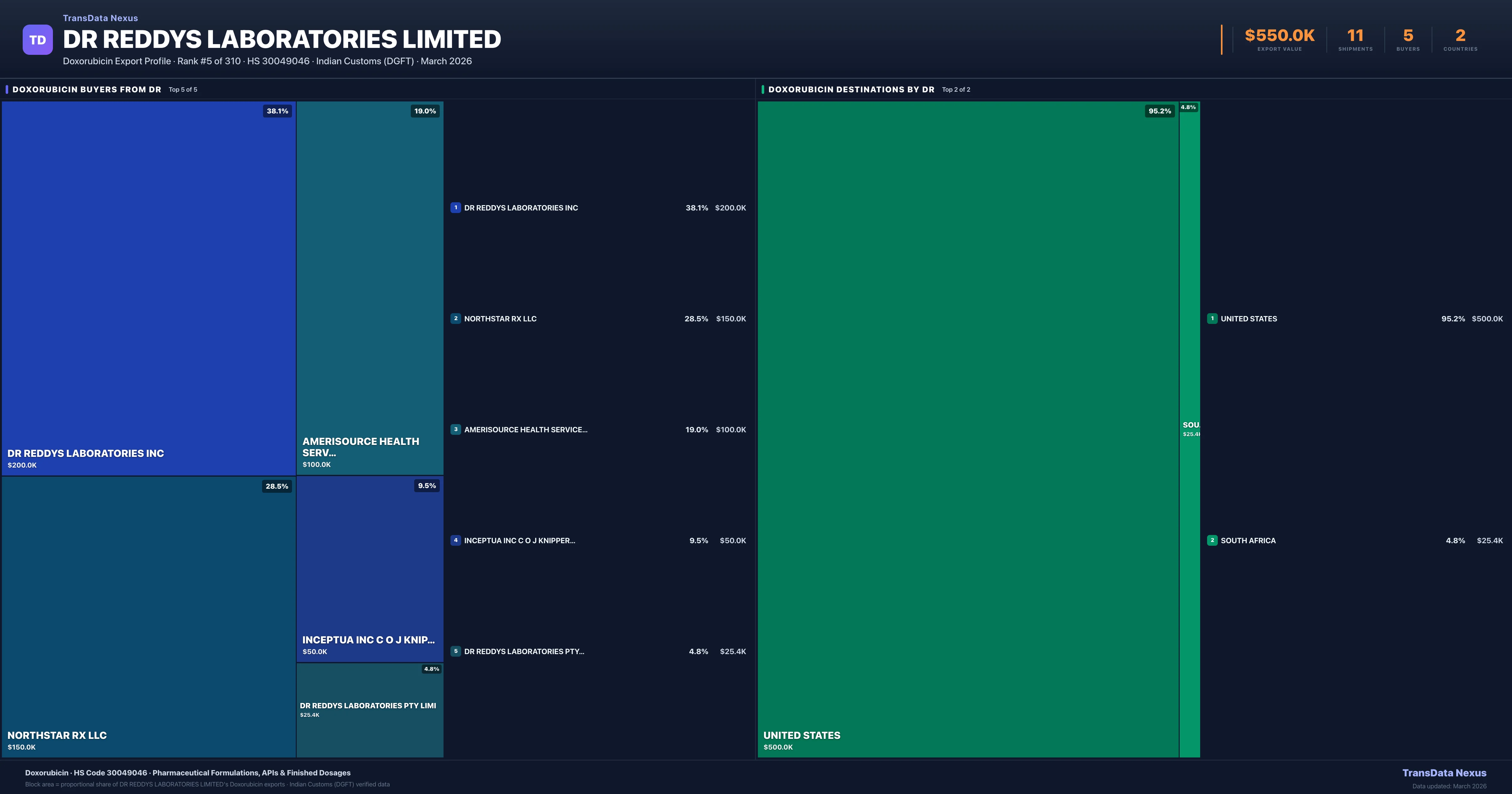 DR Reddys Laboratories Limited — Doxorubicin Export Profile: Buyers & Destinations