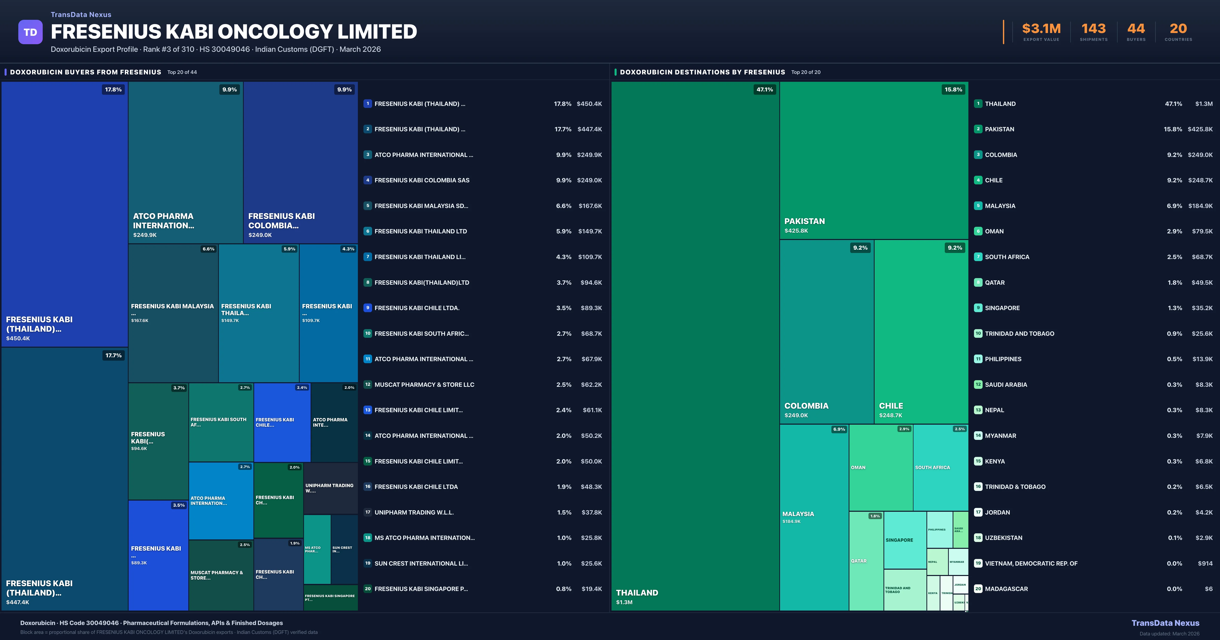 Fresenius Kabi Oncology Limited — Doxorubicin Export Profile: Buyers & Destinations