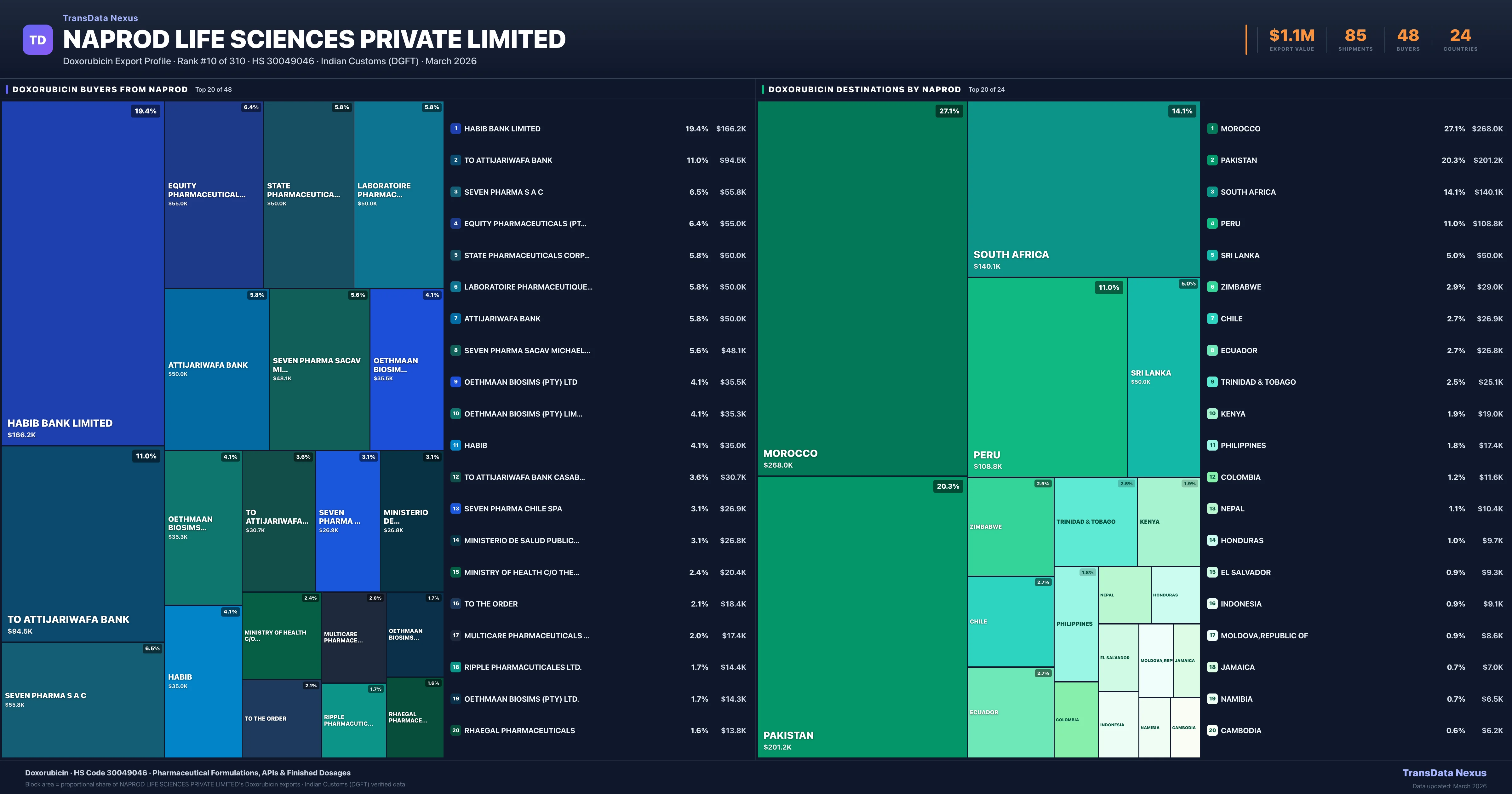 Naprod Life Sciences Private Limited — Doxorubicin Export Profile: Buyers & Destinations