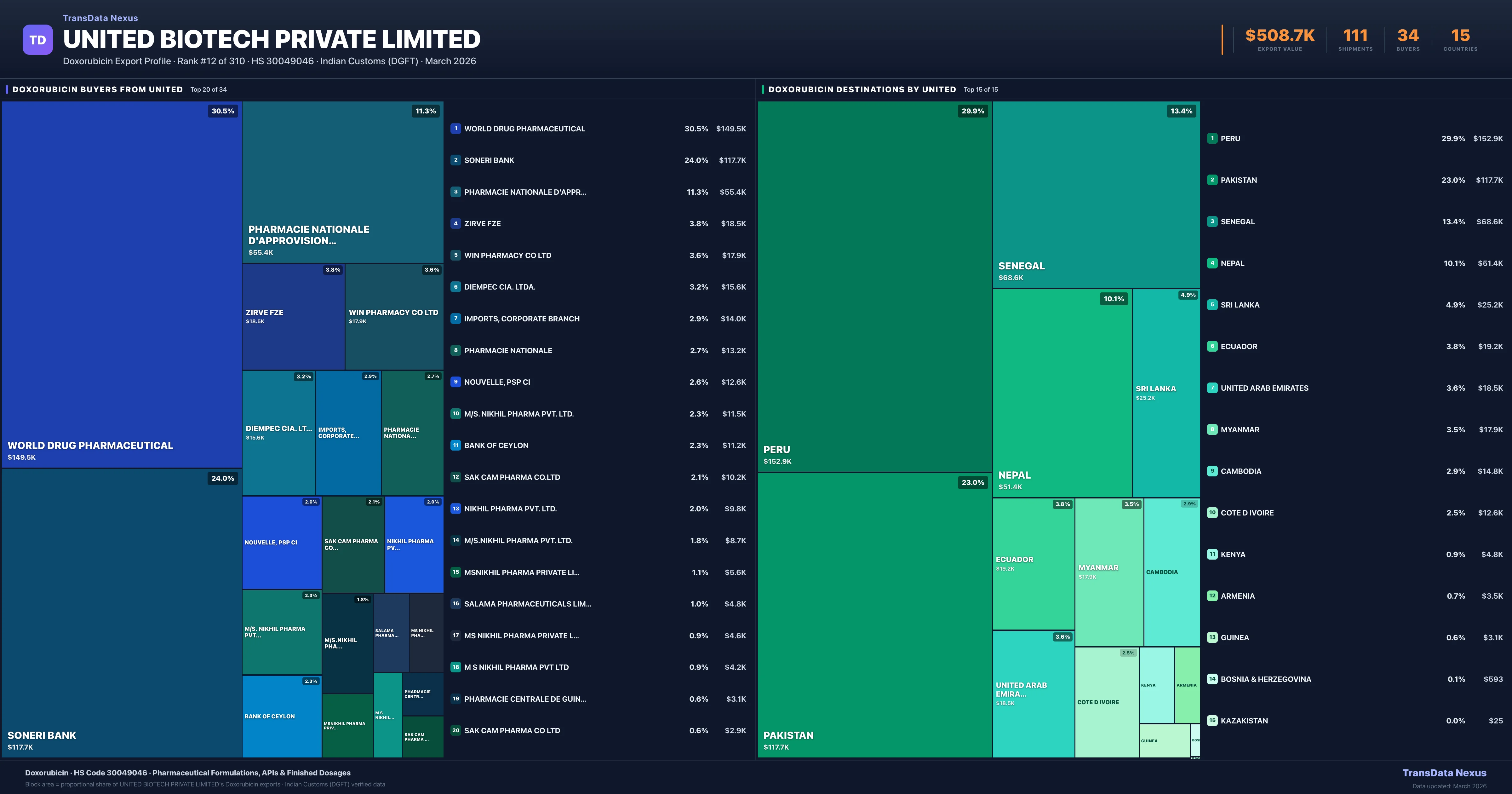 United Biotech Private Limited — Doxorubicin Export Profile: Buyers & Destinations