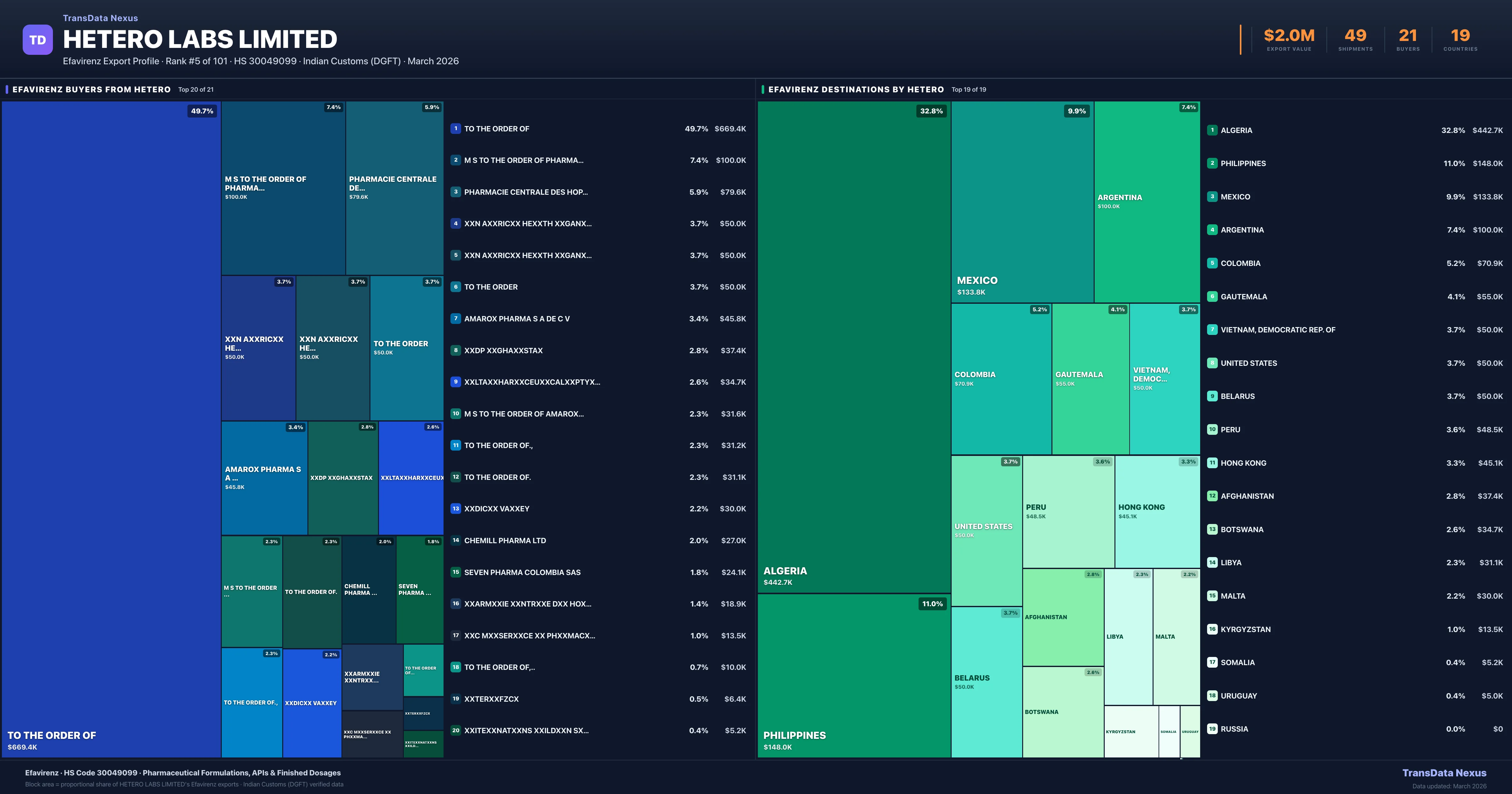 Hetero Labs Limited — Efavirenz Export Profile: Buyers & Destinations