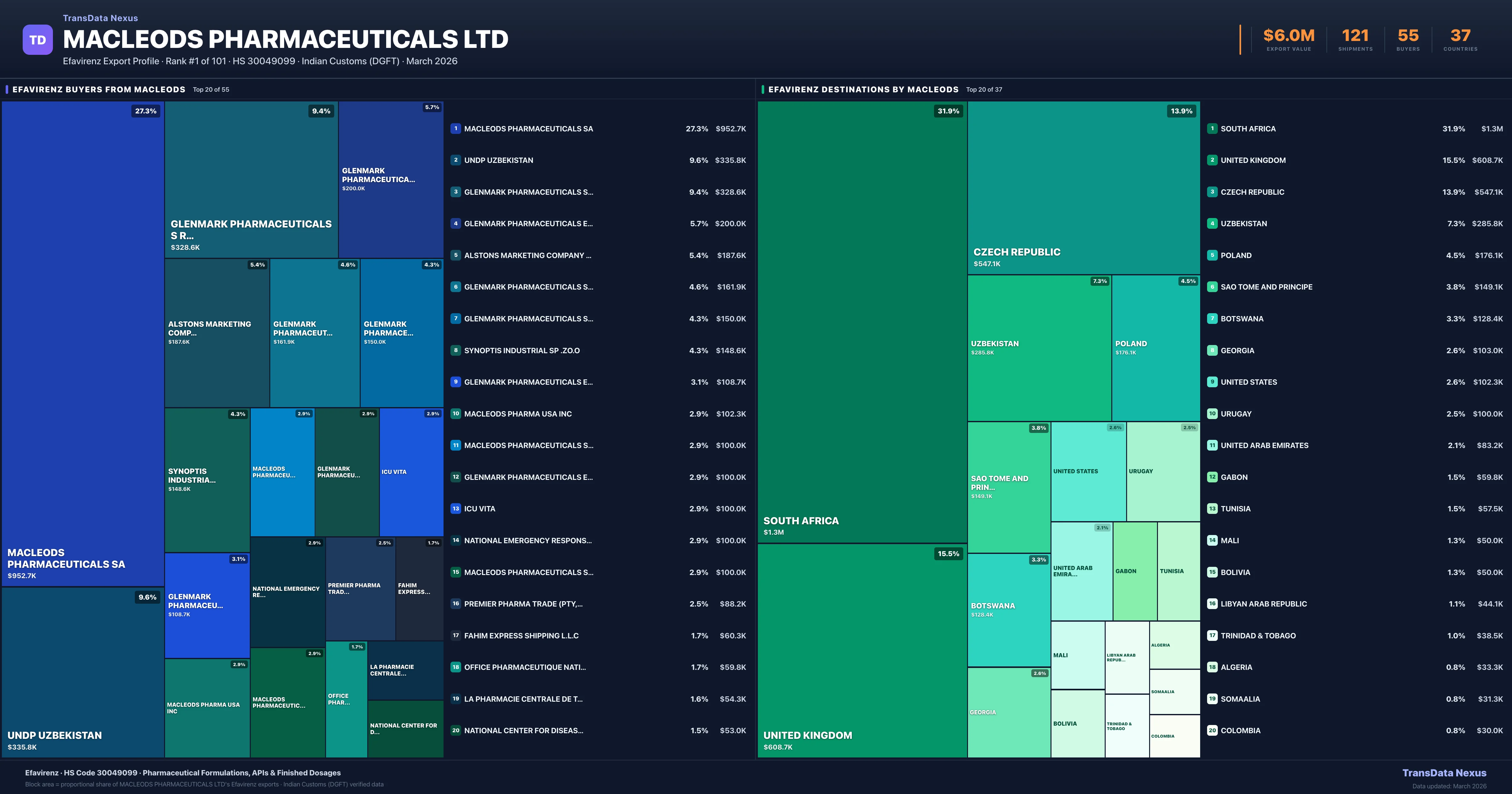 Macleods Pharmaceuticals Ltd — Efavirenz Export Profile: Buyers & Destinations