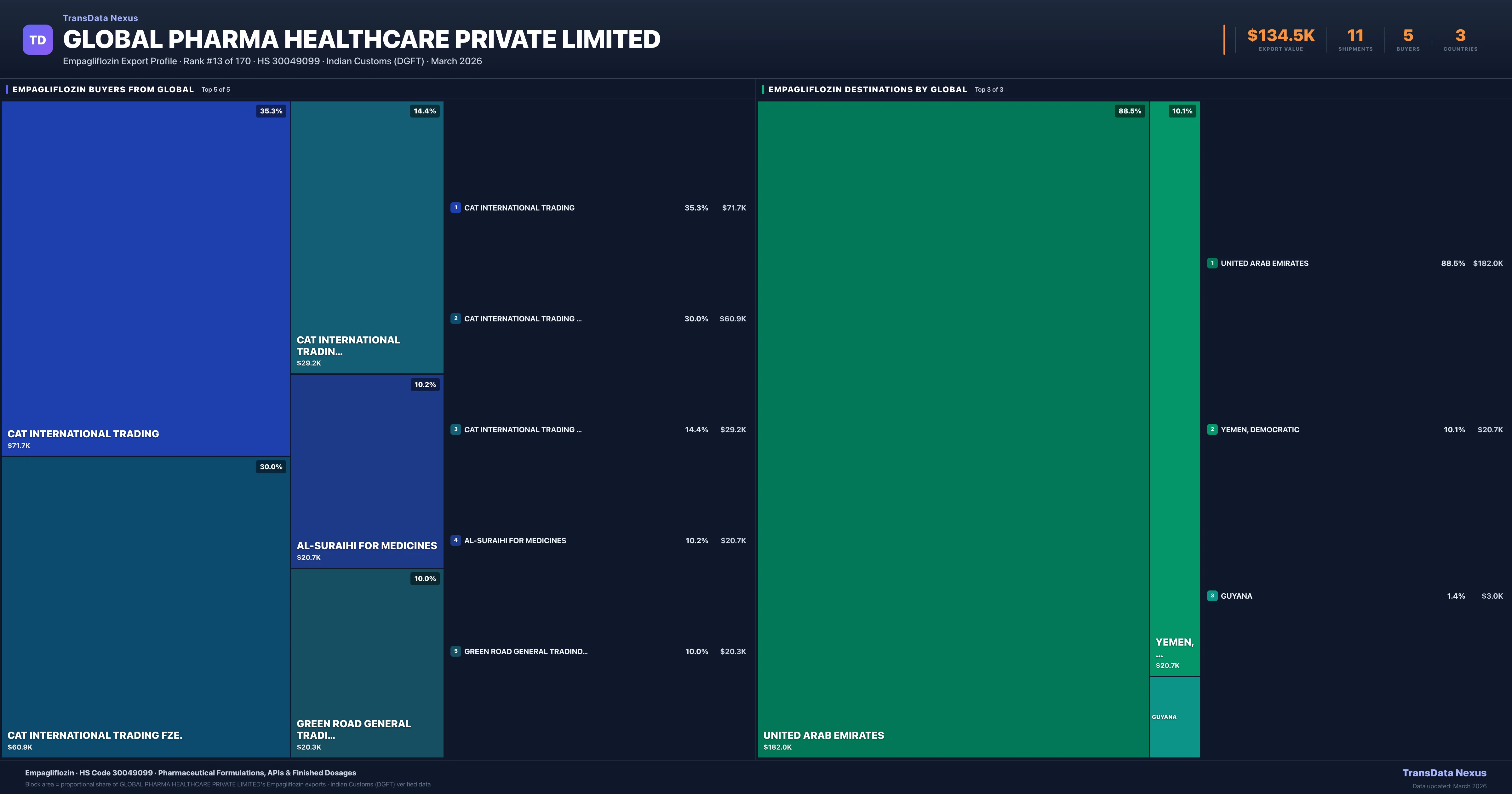 Global Pharma Healthcare Private Limited β Empagliflozin Export Profile: Buyers & Destinations