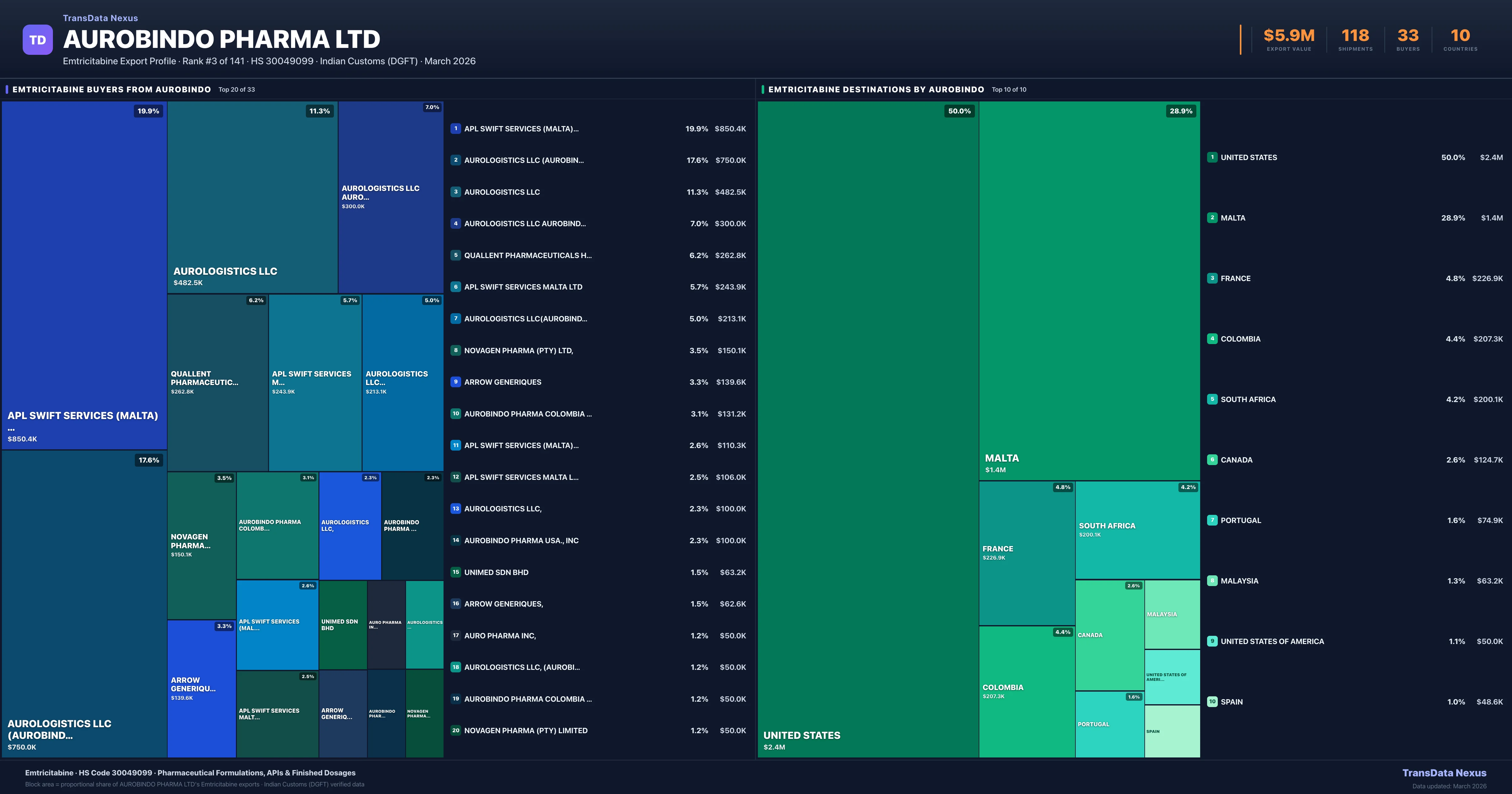 Aurobindo Pharma Ltd — Emtricitabine Export Profile: Buyers & Destinations