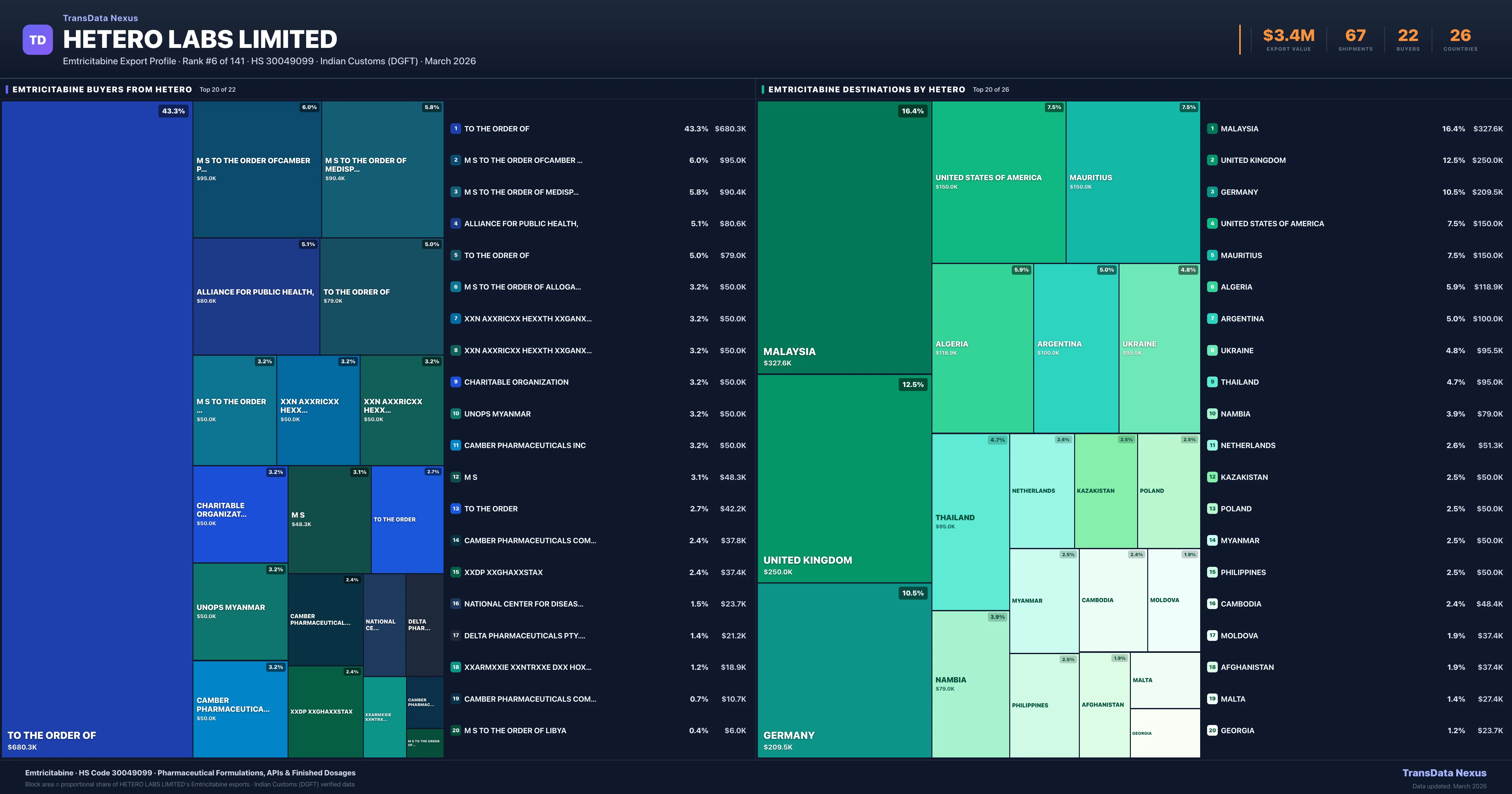 Hetero Labs Limited — Emtricitabine Export Profile: Buyers & Destinations