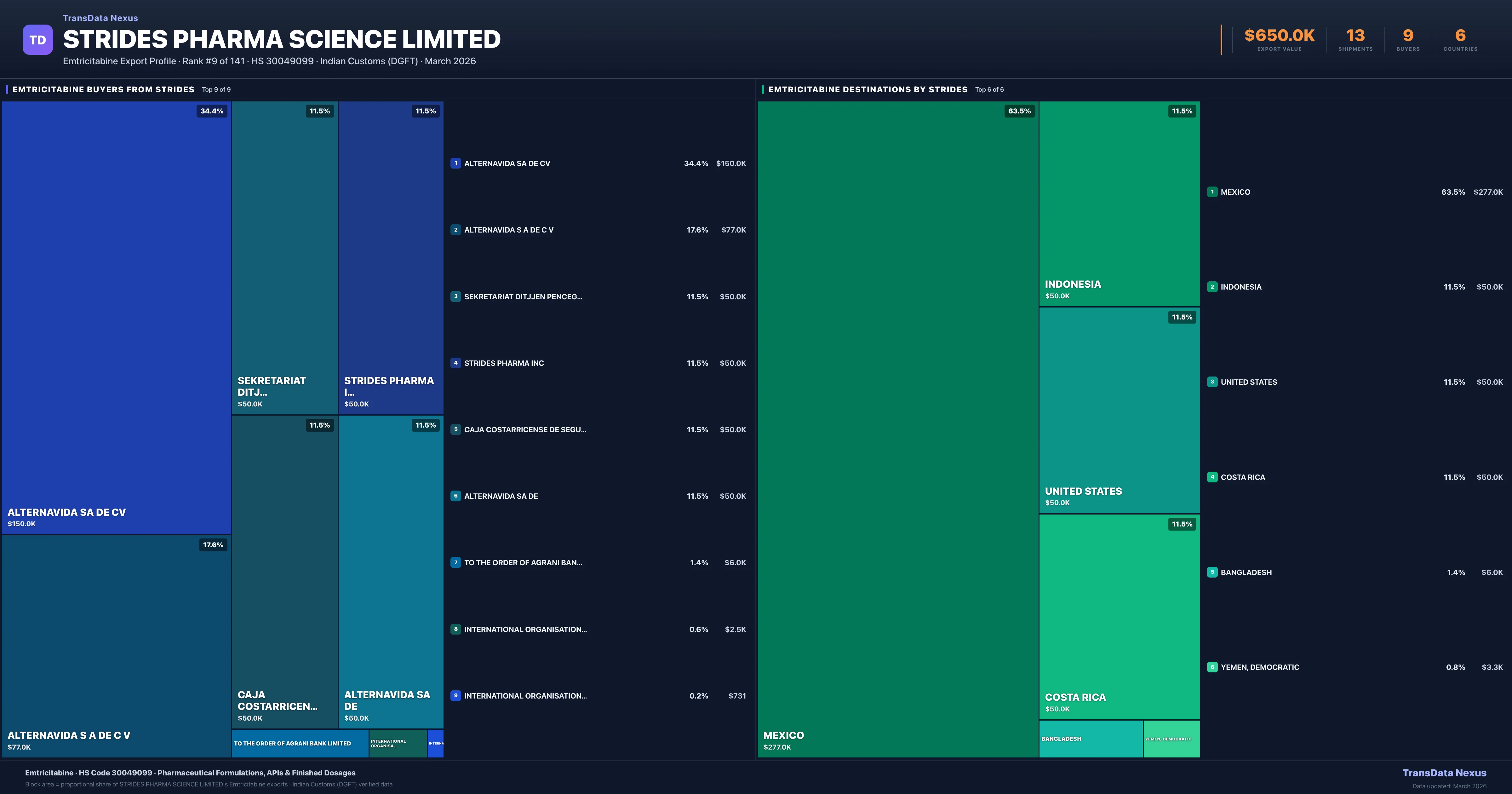 Strides Pharma Science Limited — Emtricitabine Export Profile: Buyers & Destinations